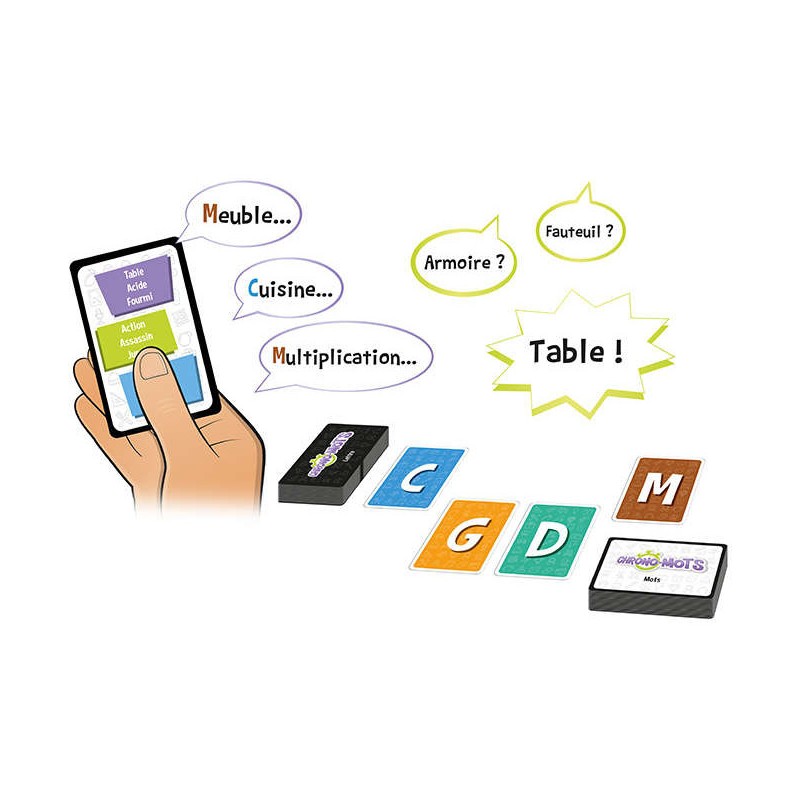 Faites équipe pour faire deviner aux autres un mot secret. Utilisez intelligemment les cartes Lettres qui vous donnent la première lettre du mot à utiliser comme indice. Moins vous utiliserez de carte Indice plus vous améliorez votre score.