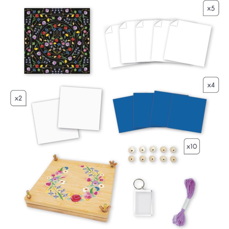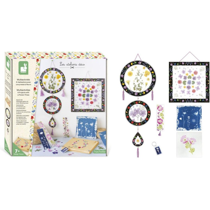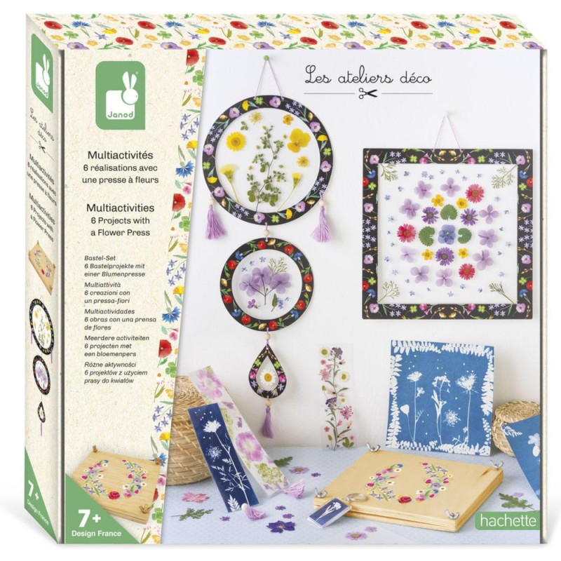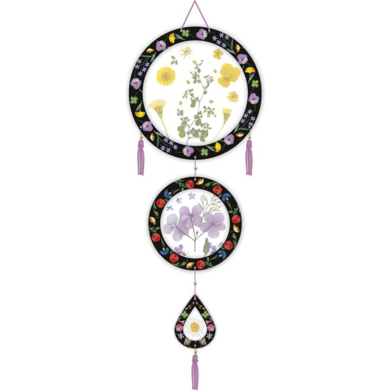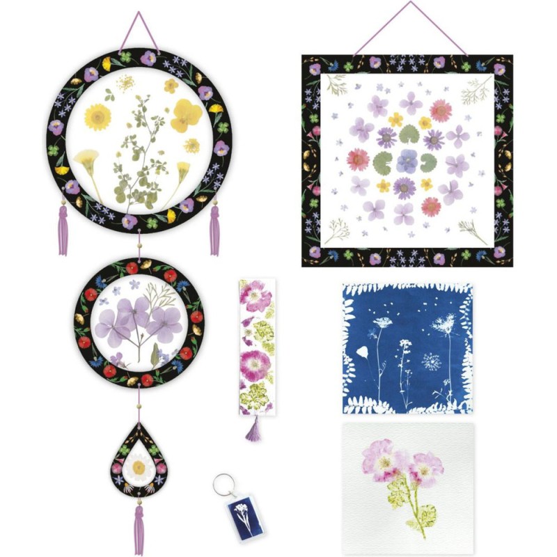 Colchique dans les prés ... Voici une activité pour enfant romantique à souhait ! Pour les passionnés de nature et de déco, voici un kit créatif permettant de faire 6 jolies réalisations avec des fleurs qu'ils auront eux-mêmes séchées ! Pour une déco naturelle et fleurie à offrir, découvrez ce set idéal pour les enfants à partir de 8 ans. Grâce à la belle presse à fleurs en bois, les enfants pourront réaliser : un attrape-rêve, des marque-pages, un porte clés, des tableaux sur papier photosensible (qui permet de faire ressortir les contours des feuilles et des fleurs) et des tableaux en tataki zomé (technique d'impression). Un livret d'instructions permet de réaliser l'ensemble des décorations pas à pas. Le kit contient une très jolie presse à fleurs, 1 cadre en carton, 6 perles en bois, 3 feuilles de papier recyclé (tataki), 4 feuilles adhésives transparentes, 4 feuilles de papier photosensible, 1 planche imprimée prédécoupée, du fil de coton, et 1 porte clé. Il faut environ 3h20 pour réaliser toutes les activités.