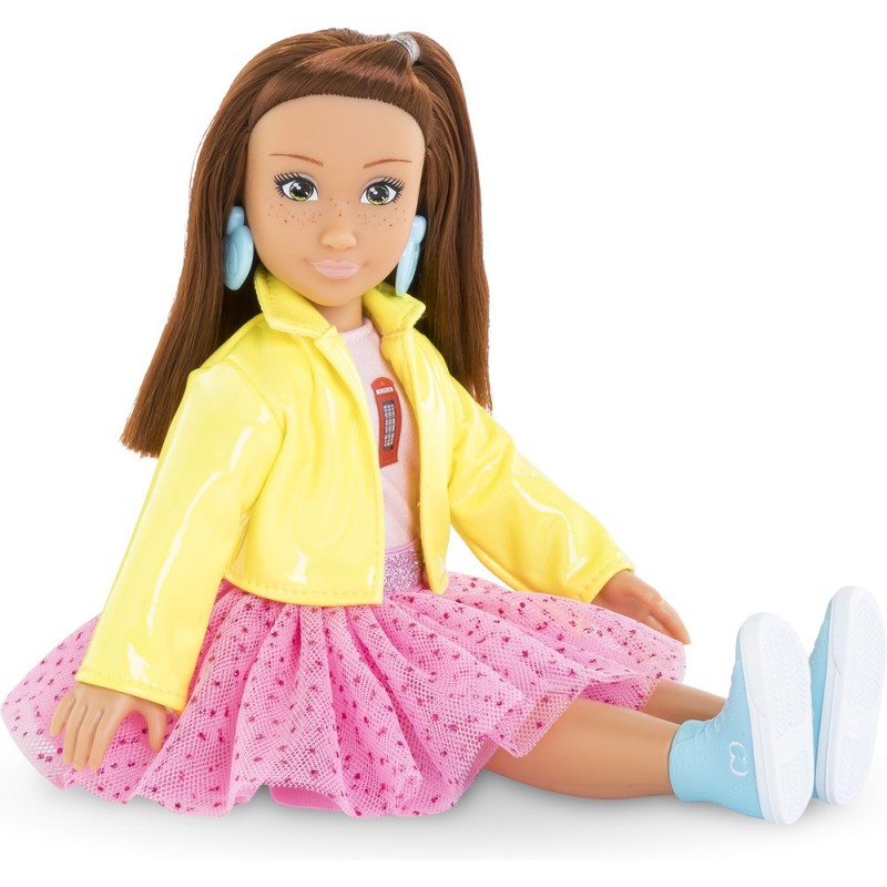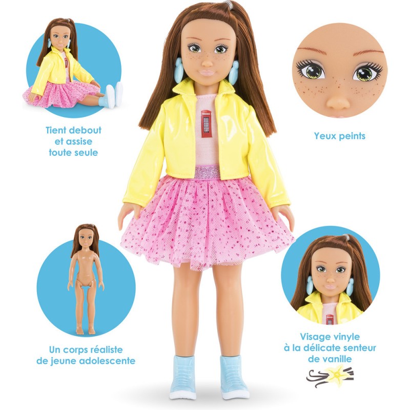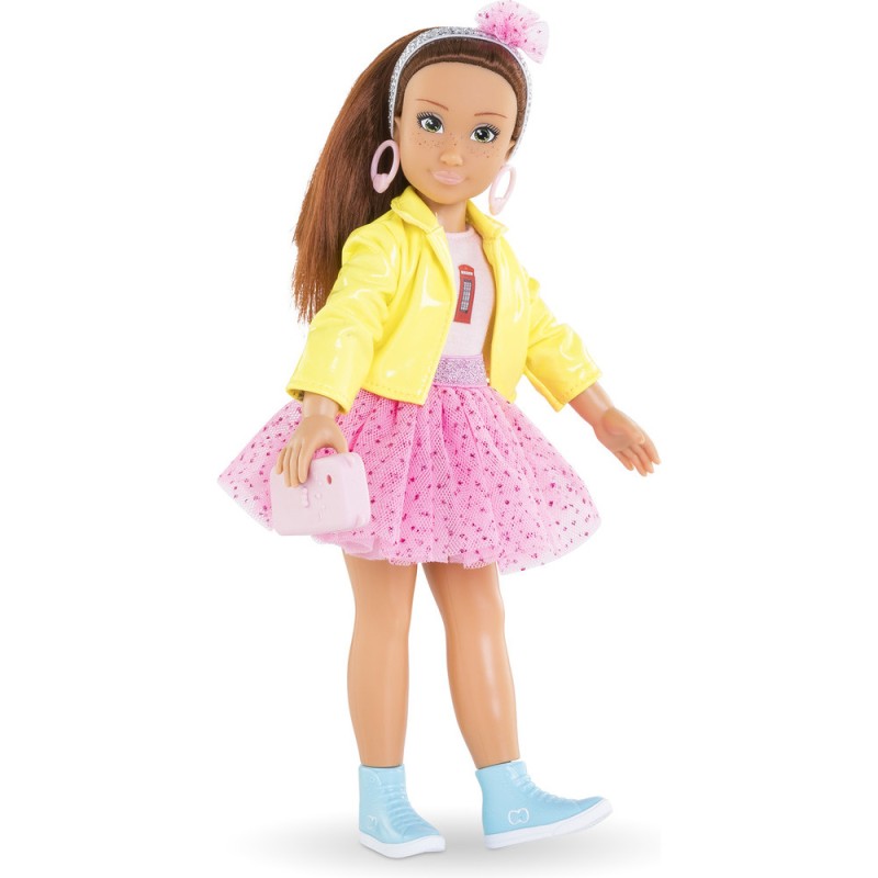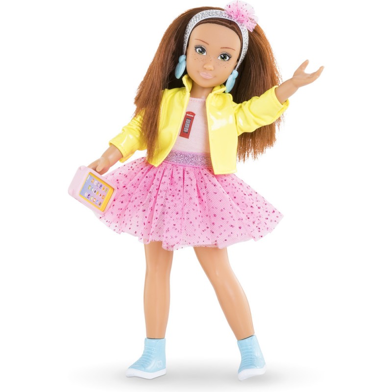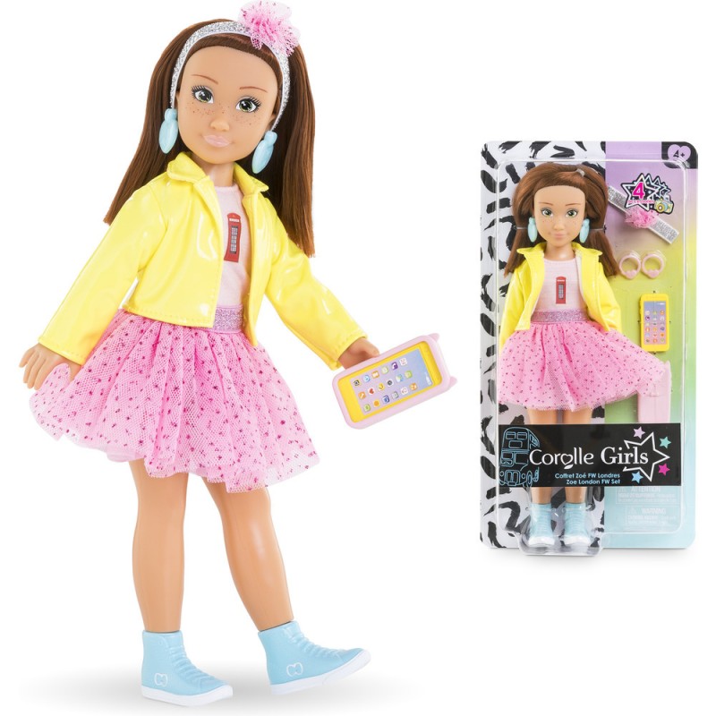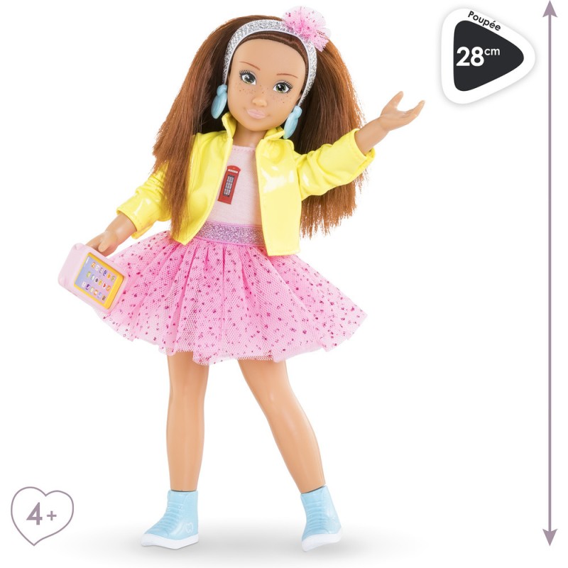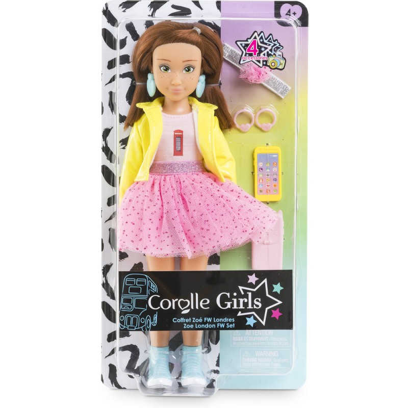 Le coffret Zoé Fashion Week Londres est composé de Zoé, une poupée mannequin de 28 cm, et de 4 accessoires : 1 paire de boucles d'oreilles amovibles, 1 téléphone mobile, 1 coque pour téléphone portable et 1 bandeau pour les cheveux. Zoé a un joli visage naturel aux traits fins qui sent bon la vanille. Ses yeux sont peints et elle possède des cheveux roux mi-longs. Elle porte 1 jupe en tulle, 1 T-Shirt jaune, 1 veste, 1 paire de bottines amovibles et 1 paire de boucles d'oreille amovibles. Poupée mannequin à la peau mate, Luna a un corps réaliste de jeune adolescente. Elle tient assise et debout toute seule. Les Corolle Girls sont déclinées en plusieurs modèles et disposent de coffrets dressing pour encore plus de jeux ! Dès 4 ans. Corolle Girls; mes meilleures amies