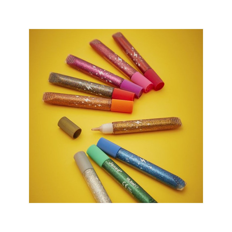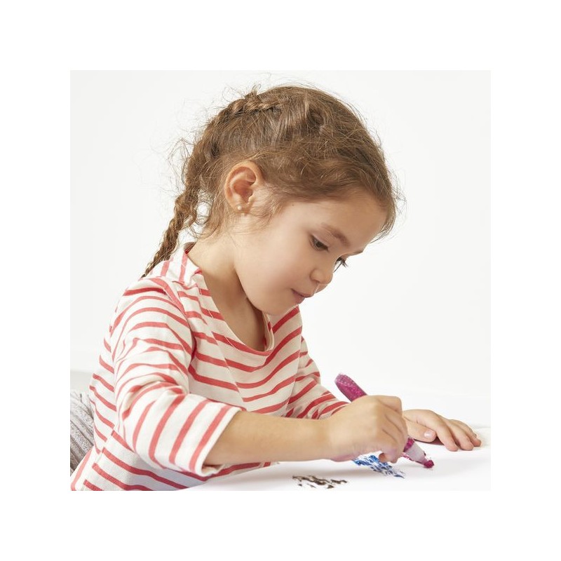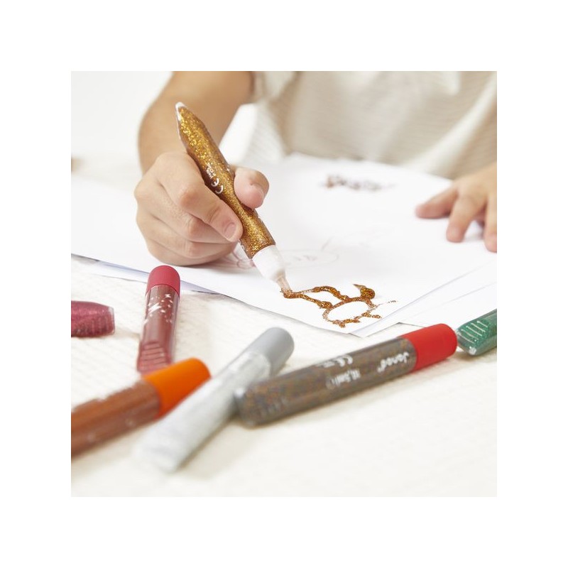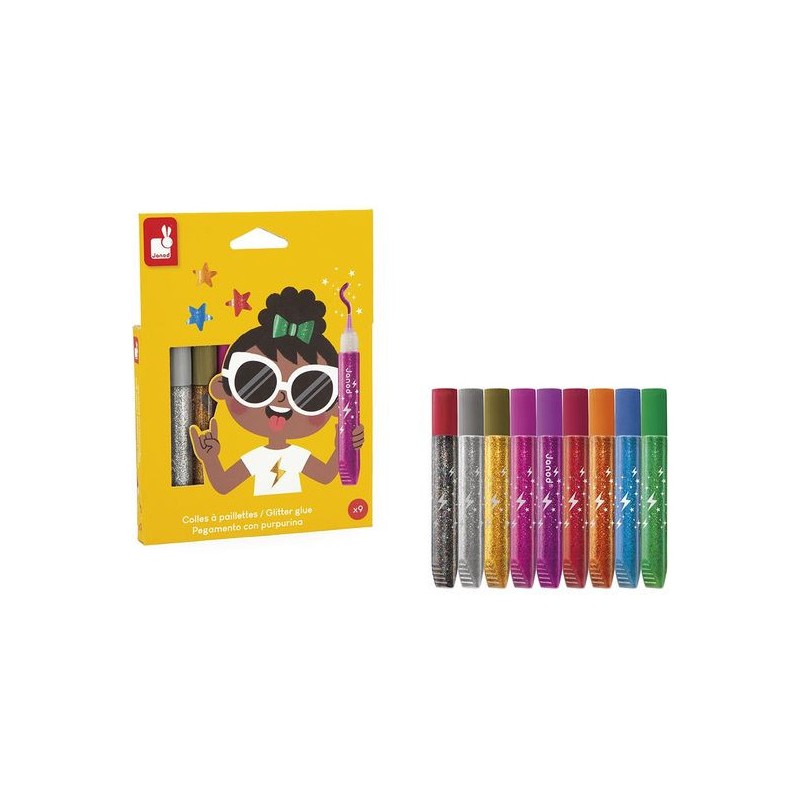 Toujours plus de brillance ! Avec ces 9 tubes de colle à paillettes, votre enfant ajoute une touche scintillante et colorée à toutes ses créations ! Avec leurs coloris vifs et variés, incluant de l’argenté et du doré, les dessins sont toujours plus chics et festifs. Ces tubes de colle pailletée offrent une forte densité de paillettes et possèdent un embout « précision », pour une utilisation facile et maîtrisée. À utiliser pour décorer ses créations ou pour coller ses bricolages avec style, la colle à paillettes fera plaisir à ceux qui aiment tout ce qui brille ! On adore la boîte réutilisable pour ranger et conserver les tubes de colle après chaque utilisation. Place à l’expression créative et à la concentration ! Les enfants expriment leur personnalité et leur créativité, tout en travaillant leur motricité fine, pour des créations aussi précises que personnelles. Ce kit de 9 tubes de colle à paillettes fait partie de notre gamme « Colo », une collection complète d’articles de coloriage, pour des moments créatifs hauts en couleur dès le plus jeune âge.