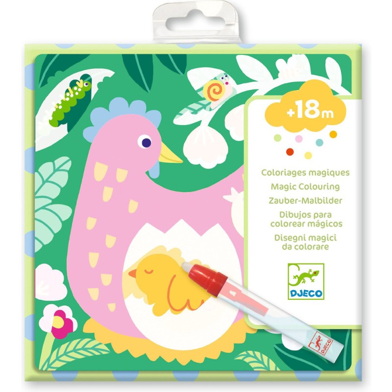 Une pochette de coloriage à l'eau adaptée pour les enfants, dès 18 mois. L'enfant colorie à l'aide du crayon à eau les parties blanches pour découvrir ce qui se cache derrière. C'est magique : des bébés animaux apparaissent ! Les planches sèchent et l'enfant recommence !
