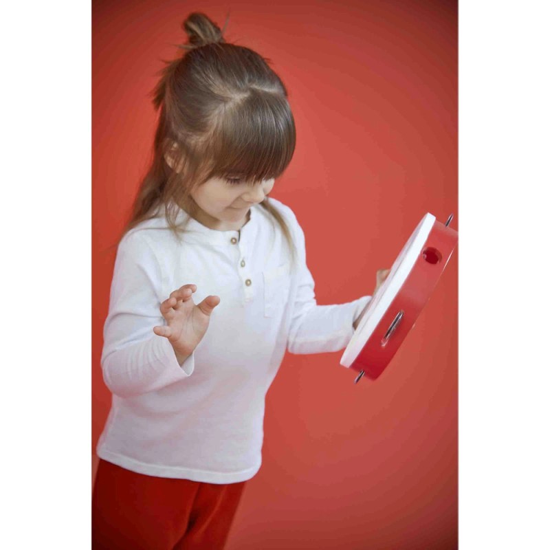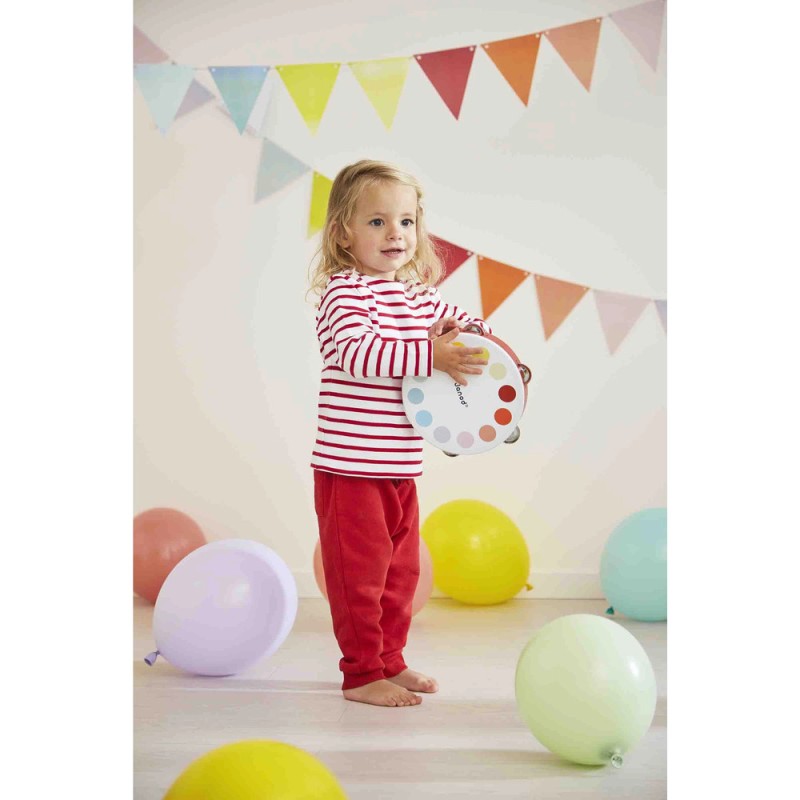 Le rythme à portée de main ! Ce joli tambourin en bois est parfait pour initier les enfants dès 2 ans à la musique. Avec son format pratique et ses 10 cymbales métalliques, de jolis sons sont à explorer. Les tout-petits peuvent le secouer pour écouter le tintement joyeux des cymbales ou le tapoter pour faire résonner sa peau et créer leurs premiers rythmes. Grâce à son trou sur le côté, il est facile à saisir et à manipuler pour les petites mains. Cet instrument accompagne les premières découvertes musicales, stimule la motricité et développe le sens du rythme tout en favorisant la créativité. Un compagnon idéal pour transformer chaque moment en joyeuse improvisation ! Ce tambourin fait partie de la gamme Confetti, une gamme complète de jouets instruments de musique avec des motifs Pop N' Rock ! Plein de couleurs et de joie, les jouets musicaux Confetti permettent aux plus jeunes musiciens de s'initier aux joies de l'improvisation musicale. Ce jouet d'éveil musical est fabriqué à partir de bois Fsc™. Prêts pour un concert à la maison ?