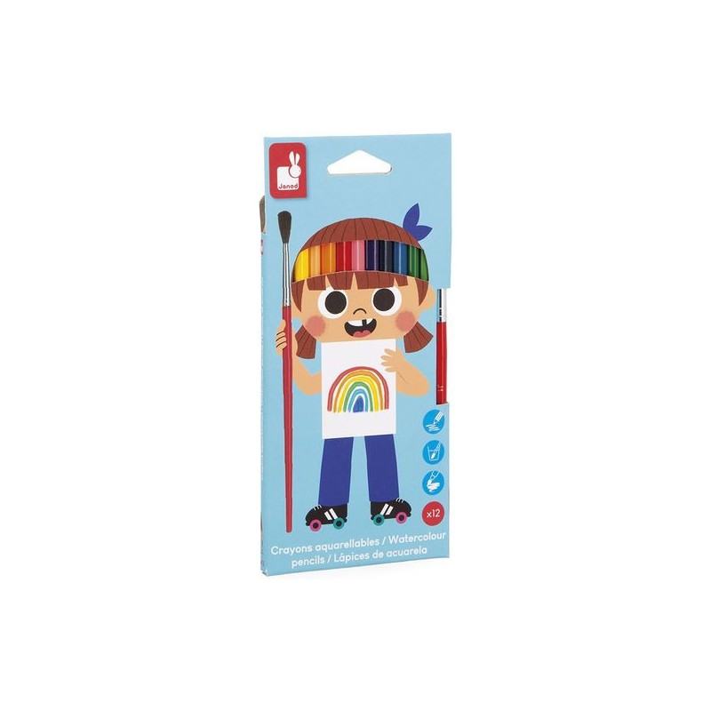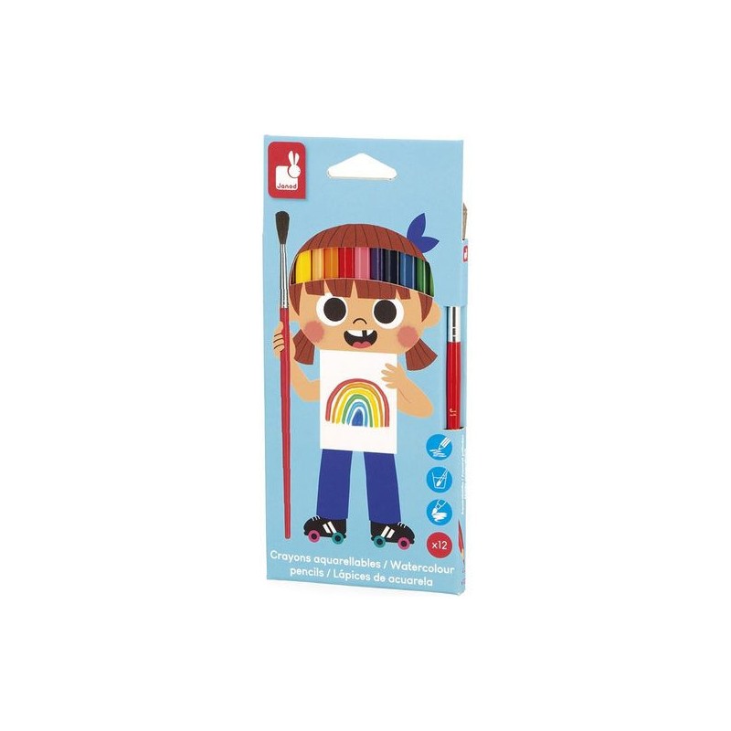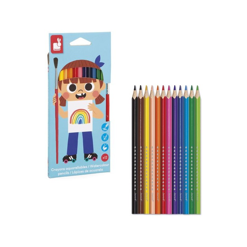 Super ces crayons de couleur aquarellables ! Adaptés aux enfants à partir de 3 ans, ces 12 crayons de couleur offrent une palette lumineuse et sont livrés avec un pinceau, pour transformer les dessins en vraies œuvres d’art. Ils sont idéals pour les petits artistes qui aiment changer ou tester plusieurs techniques ! Ces crayons de couleur possèdent une mine tendre et résistante, pour des couleurs éclatantes et durables. Une fois le dessin tracé ou colorié, on peut facilement le transformer aquarelle en repassant dessus à l’aide du pinceau humidifié ! Ils prennent alors une nouvelle dimension, pour des œuvres toujours plus spectaculaires et surprenantes. La forme triangulaire des crayons assure une prise en main ergonomique et confortable pour les petits. C’est une avalanche de couleurs ! On adore la boîte réutilisable, pour ranger facilement les crayons et le pinceau après chaque session. Quand ils dessinent ou peignent, les enfants développent leur motricité fine et leur créativité. En progressant, ils ajoutent des détails et adorent les crayons avec un côté « Waouh » et de chouettes fonctionnalités ! Ce kit de 12 crayons de couleur aquarellables fait partie de notre gamme « Colo », une collection complète d’articles de coloriage, pour des moments créatifs hauts en couleur dès le plus jeune âge.