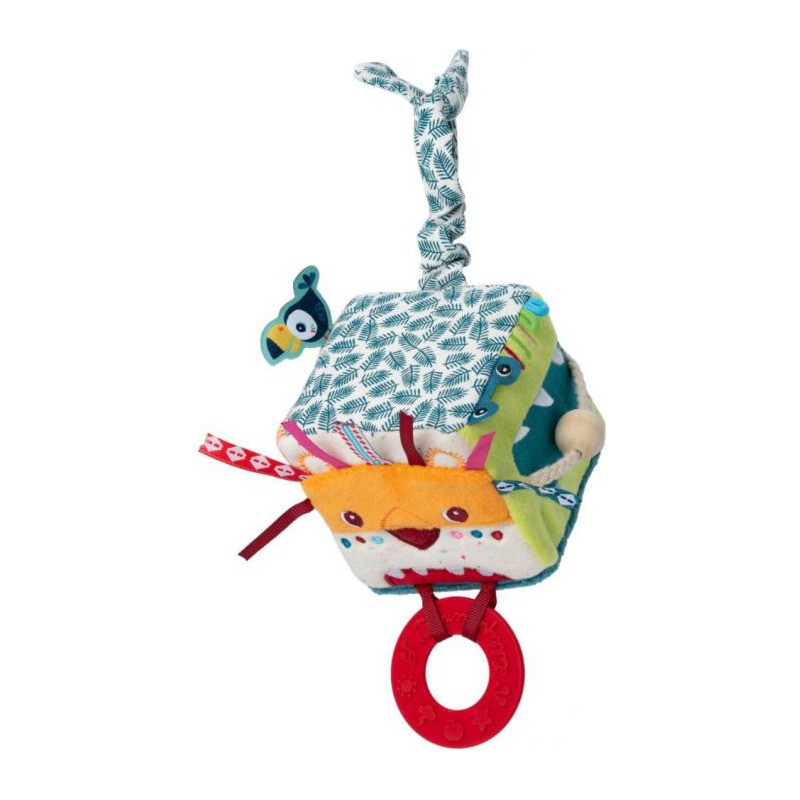 Découvrez les activités et les histoires de ce cube tout doux sur la thématique de la jungle. L’anneau de dentition offre un vrai soulagement lorsque bébé fait ses dents. Stimule les sens, la motricité fine et la préhension.