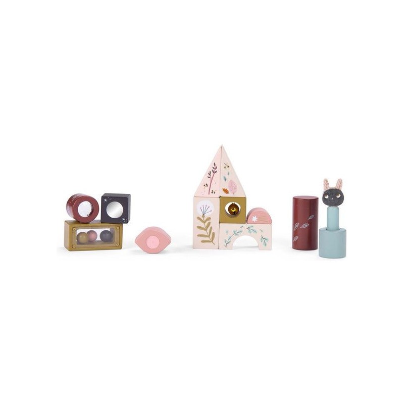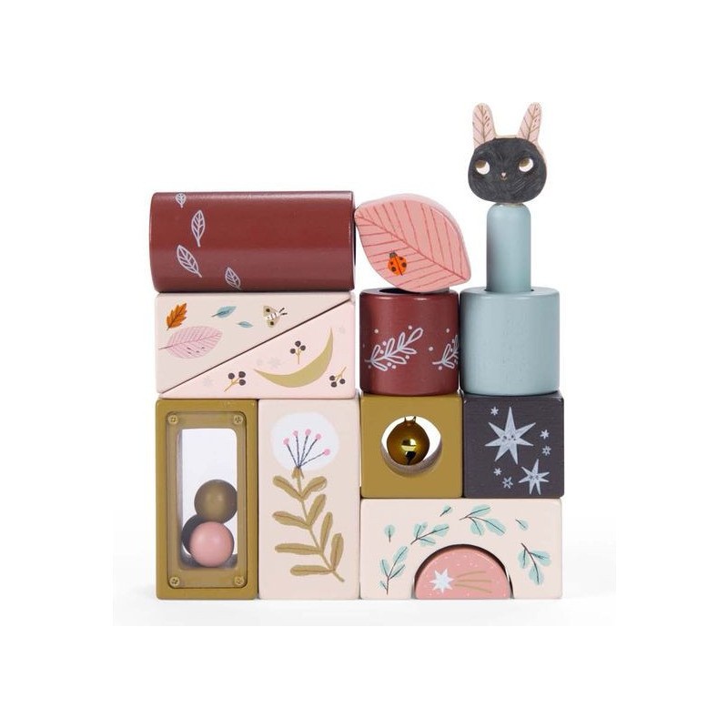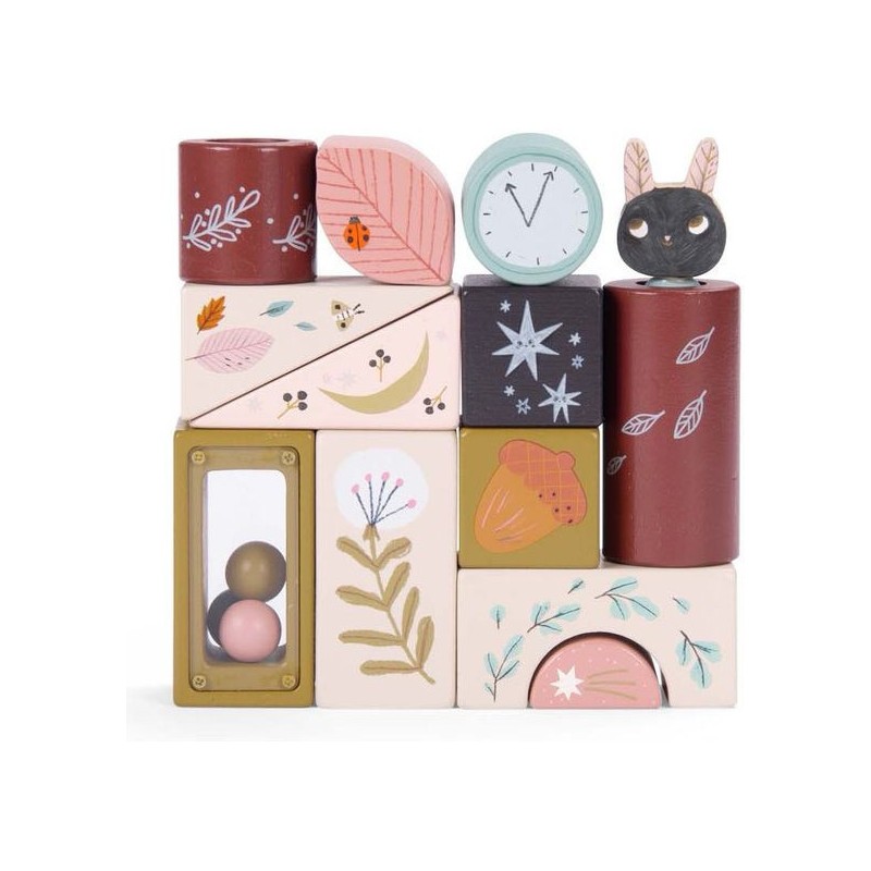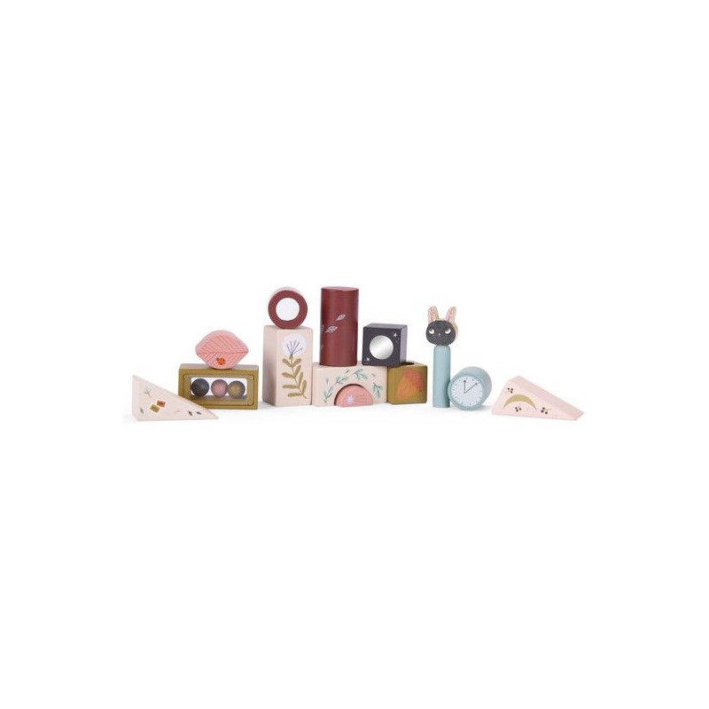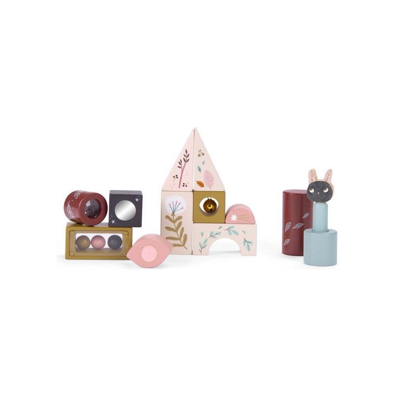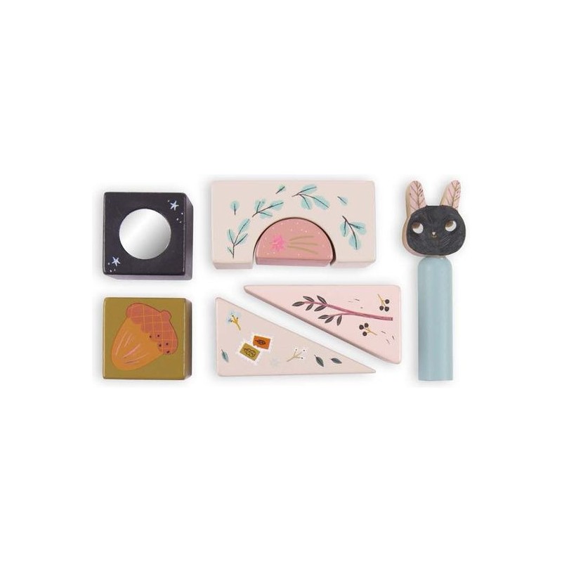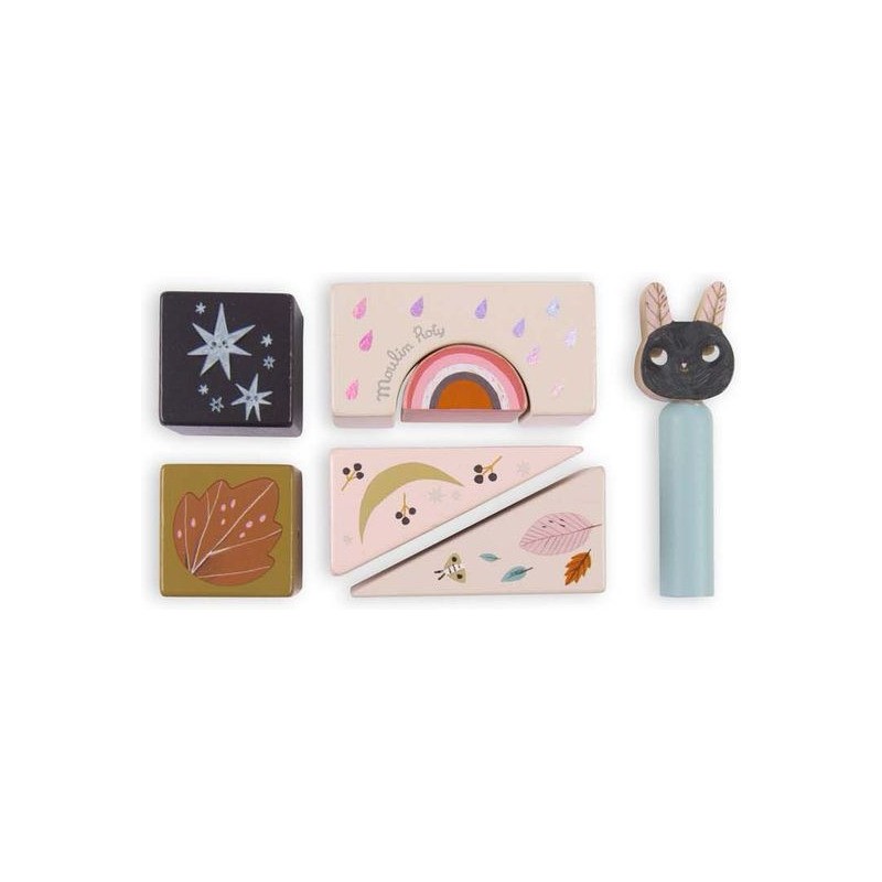 Jeu d'activités en bois illustré de la collection Après la pluie, comprenant 13 pièces de formes différentes avec petit miroir, grelot, pop-up et petites billes. Il développe la motricité de l'enfant et lui apprend les formes et les couleurs. Les personnages d’Après la pluie incarnent de doux esprits, venus se réfugier dans la chambre après une balade dans les sous-bois parfumés.