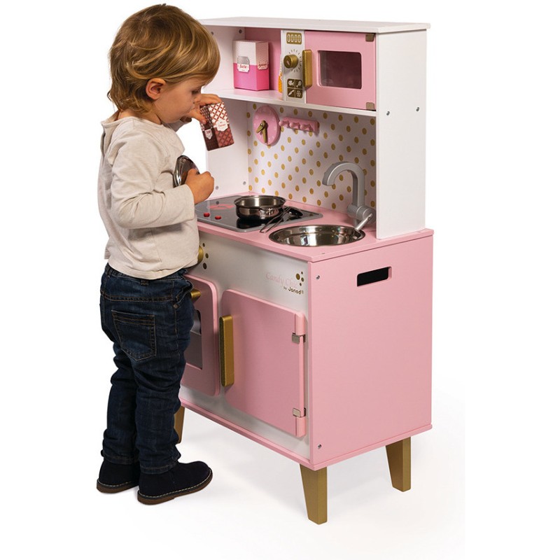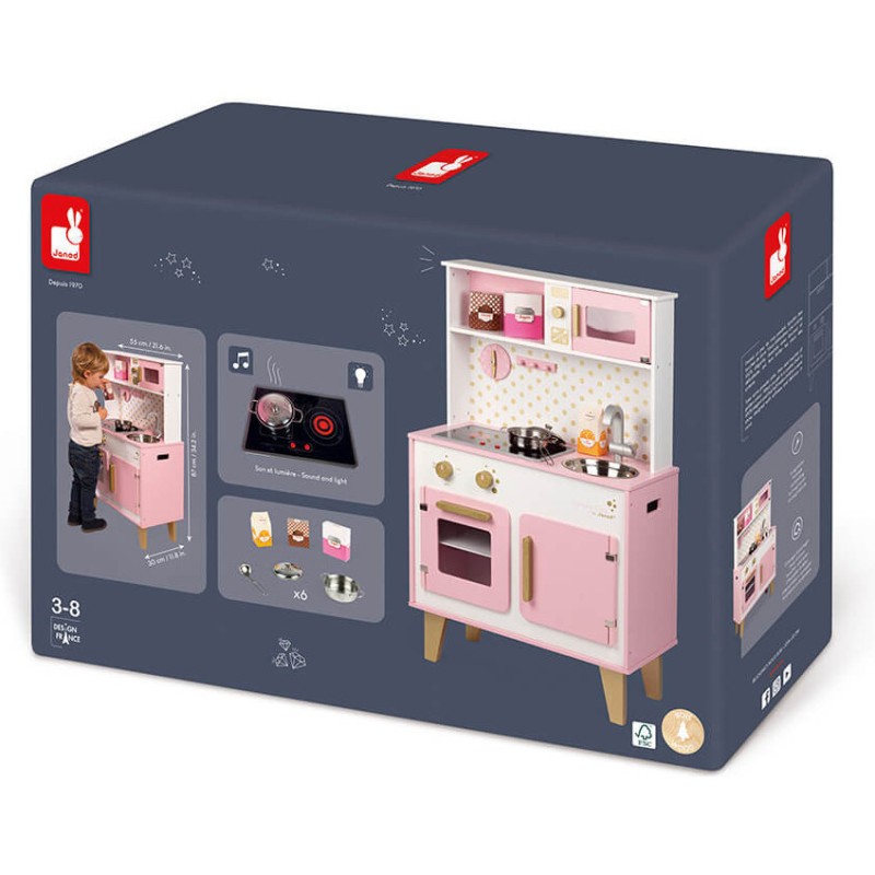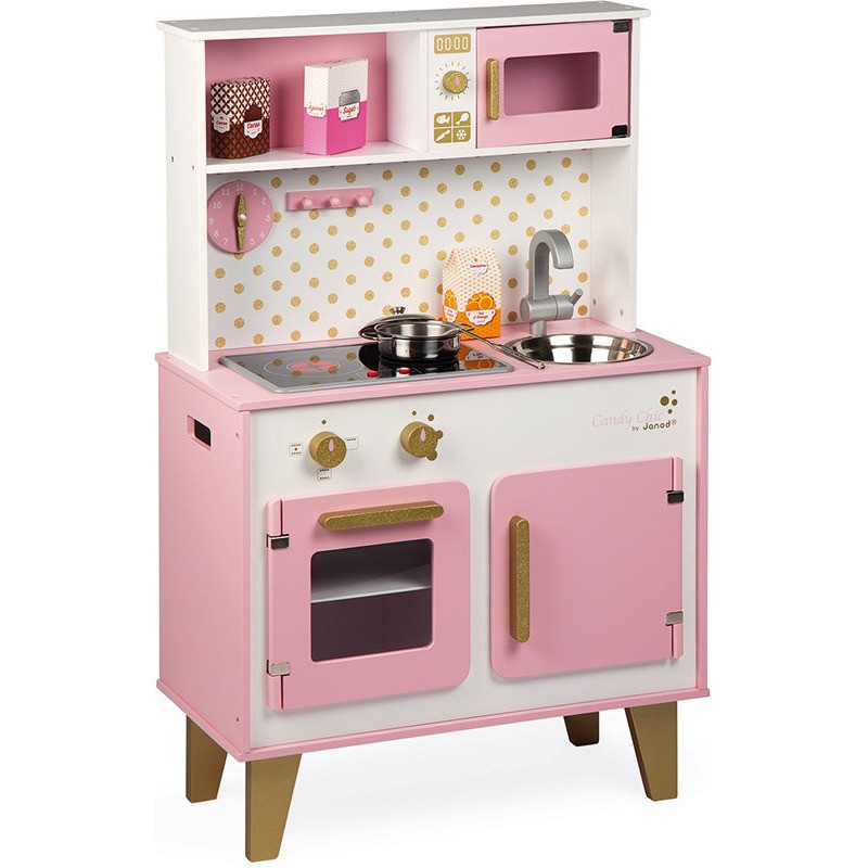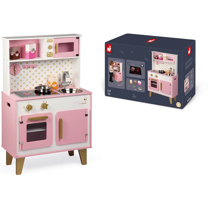 Comme cuisiner c'est toujours un plaisir, Janod vous propose de découvrir la Grande Cuisine Candy Chic couleur bonbon doux et barbe à papa ! La cuisine est un parfait jeu d'imitation qui permet à l'enfant de se construire grâce à de nombreux apprentissages : Il intègre les codes de son environnement qu'il rejoue de manière autonome, il développe son langage, son imagination et sa motricité !