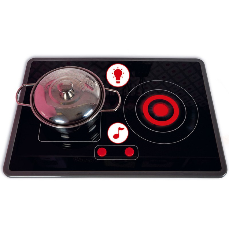 On adore également la plaque à induction sonore à Led ! Il suffit d'appuyer une fois sur les boutons rouges pour que les plaques s'allument, puis une deuxième fois pour entendre le son de l'eau qui bout. Le son et les plaques à induction s'éteignent automatiquement au bout de 30 secondes ou si vous appuyez une troisième fois sur les boutons rouges.