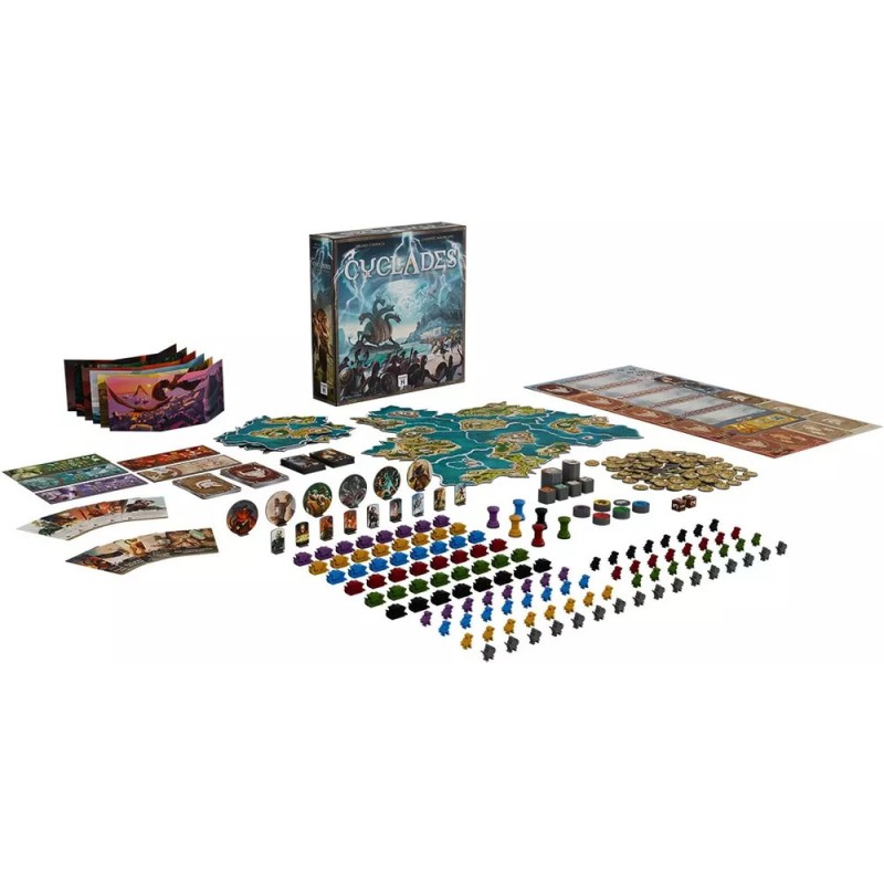 Chaque joueur dirige sa faction pour imposer son hégémonie sur l'archipel des Cyclades à l'époque d'une Grèce mythologique fantastique. Les joueurs se livrent à des enchères pour s'attirer les faveurs des dieux, engager des créatures et héros et bâtir des Métropoles, symboles de leur suprémacie. L'édition Légendaire combine le jeu original et ses nombreuses extensions dans une expérience de jeu renouvelée, plus épique et plus palpitante. Parmi les changements majeurs : - 3 configurations de jeu : classique, en équipes de 2, et un mode 2 joueurs amélioré. - Un plateau de jeu modulaire assemblé lors de la mise en place du jeu pour plus de rejouabilité - Des phases d'enchères plus courtes et plus dynamiques grâce à une nouvelle échelle d'enchères exponentielle - 6 dieux au lieu des 5 originaux, augmentant la variété d'actions des joueurs - De nouvelles actions de construction gratuites et obligatoires pour les dieux qui accélèrent considérablement le temps de jeu et l'interaction entre les joueurs - De nouvelles créatures et de nouveaux héros sont désormais disponibles dans le jeu de base.