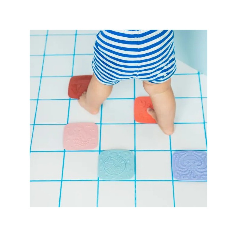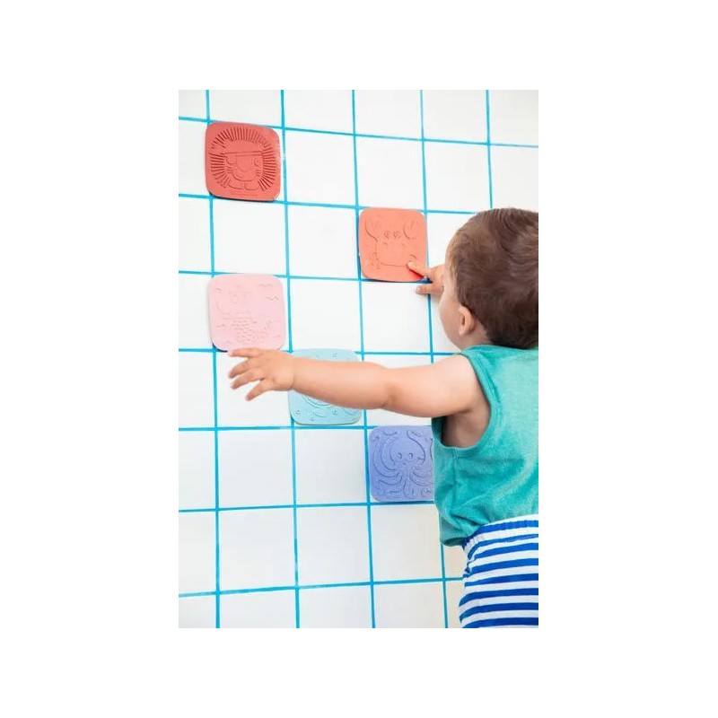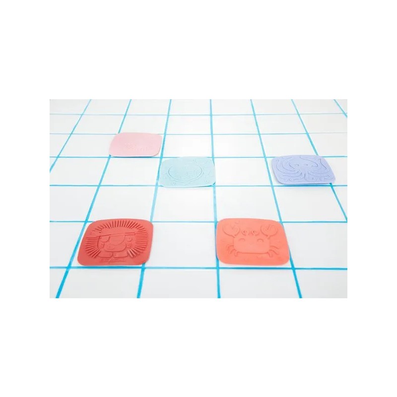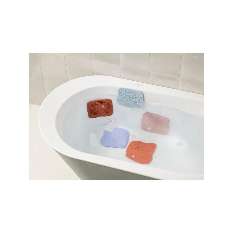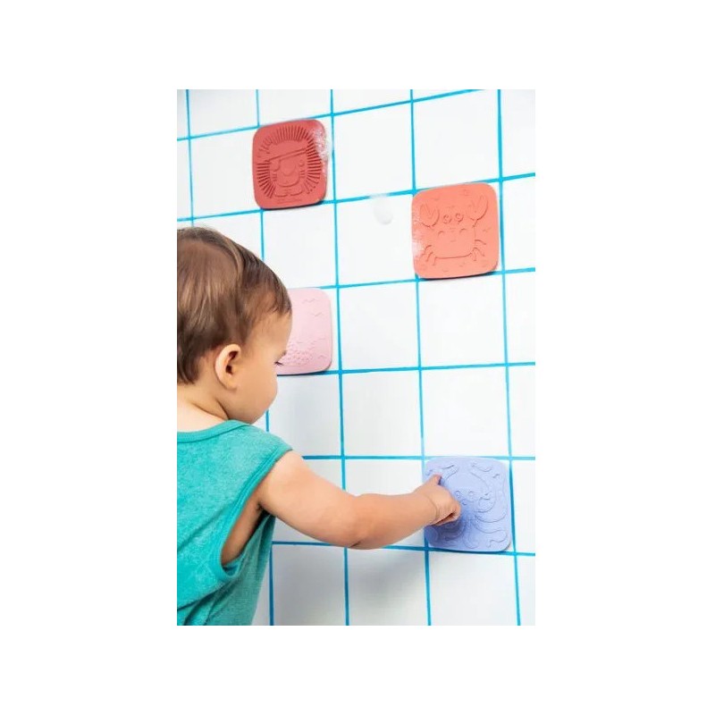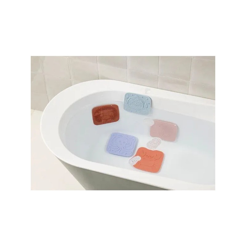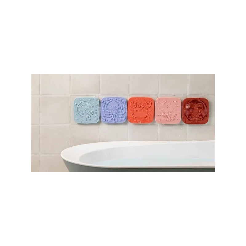 Plongez dans un univers enchanteur avec ces 5 dalles en silicone à ventouse ! Chaque dalle révèle un relief à toucher : la sirène, le crabe, la tortue, le lion et la pieuvre. À fixer au fond ou sur les parois du bain/douche, elles éveillent les sens, stimulent la curiosité et transforment le bain en une aventure magique et sensorielle.