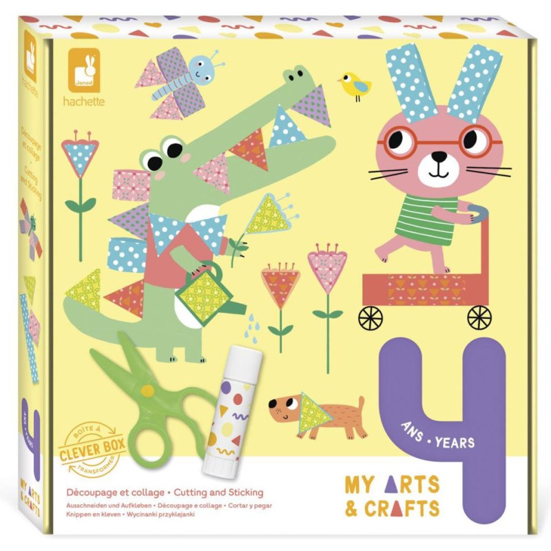 Découper et coller, c'est super amusant et ça fait travailler la motricité fine des enfants dès 4 ans ! Dans ce coffret créatif, il y a tout le nécessaire pour réaliser 4 tableaux à décorer avec du papier à motifs que les petits devront couper puis coller au bon endroit ! Malin la Clever Box, la boite se transforme en chevalet pour exposer les belles créations. Une paire de ciseaux adaptée aux petits (elle ne coupe que le papier) et de 5 feuilles de papier à motifs permettent aux mini artistes de laisser parler leur créativité. Cette activité est très facile : il suffit de découper les formes pré-dessinées des feuilles de papier et de les disposer au bon endroit à l'aide du bâton de colle fourni. Les enfants pourront suivre le livret d'instructions inclus. Il faut environ 1h30 pour finaliser les 4 tableaux. Ce coffret créatif fait partie de la gamme My Arts & Crafts qui présente des animaux tout mignons aux couleurs pastel et qui propose aux plus petits leurs premières activités de création.