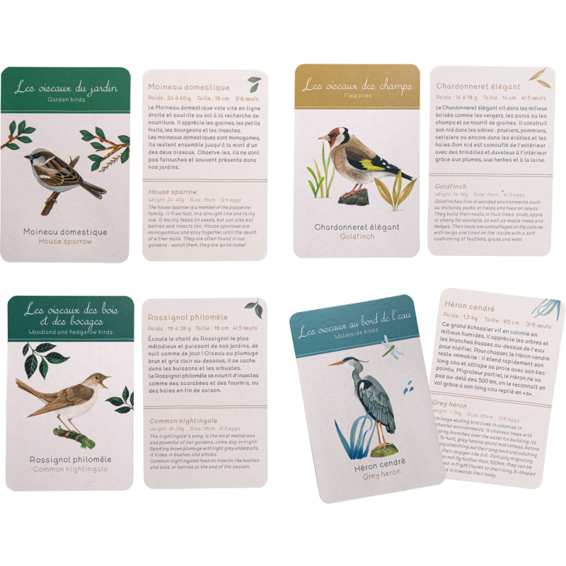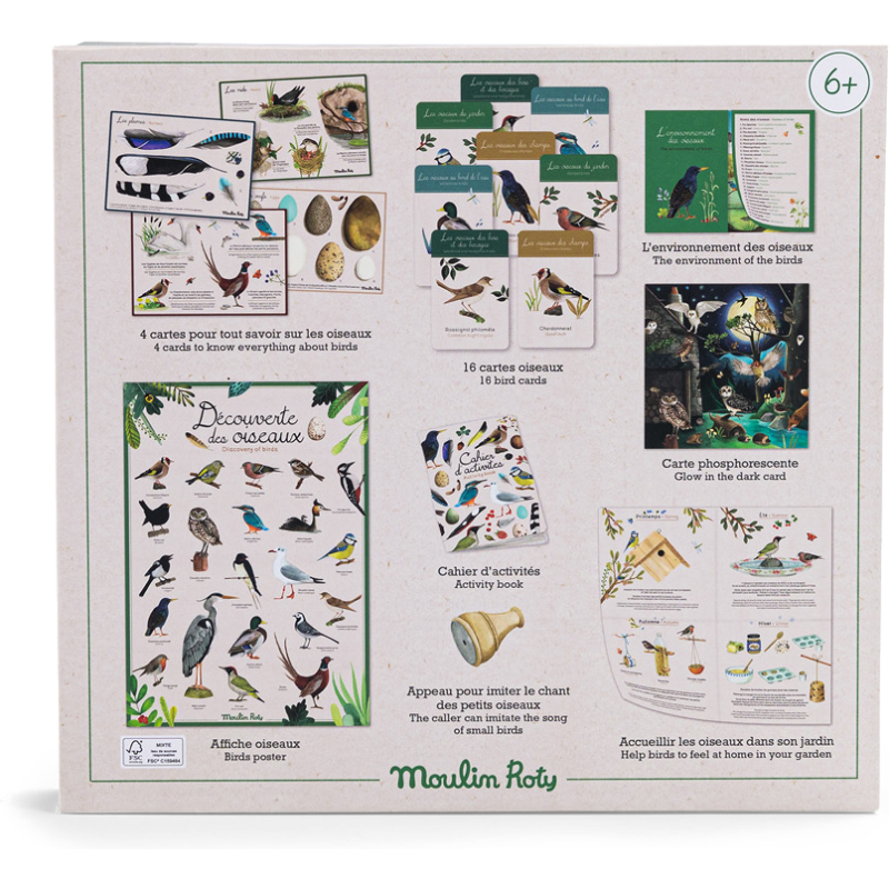 Découvre les oiseaux qui t'entourent ! Dans ce coffret pédagogique, retrouve tout le nécessaire pour reconnaitre les oiseaux, les accueillir dans ton jardin et les imiter. Comprend 26 accessoires : cartes d'identification, cahier d'activités
