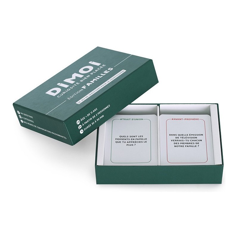 DÉConnectez Et Renforcez Vos Liens : loin des écrans, prenez le temps de rire ensemble, de partager vos souvenirs. Se RedÉCouvrir En Famille : apprenez de nouvelles choses à propos de vos proches ! Toute la famille peut y jouer dès 11 ans. Amusez-Vous Tous Ensemble : sans limite de joueurs, animez vos repas, vos trajets en voiture, vos vacances, vos moments à la maison et bien plus encore !