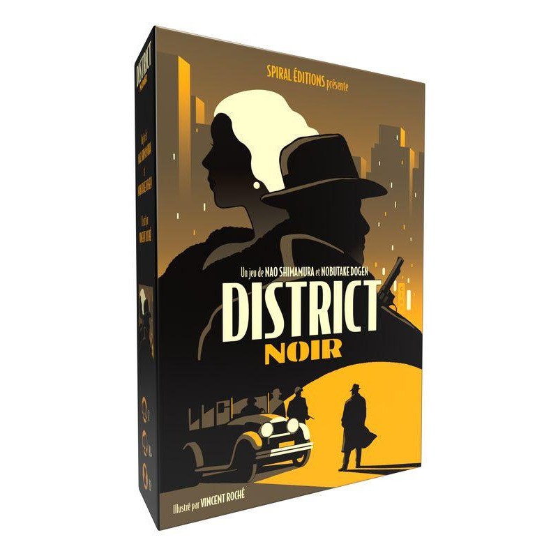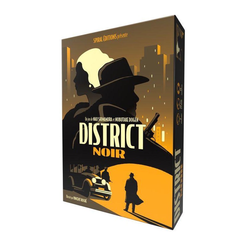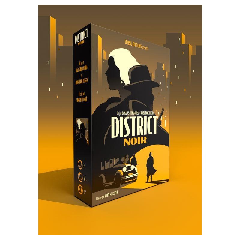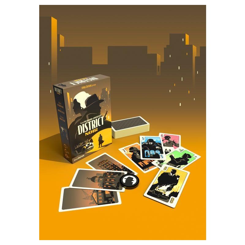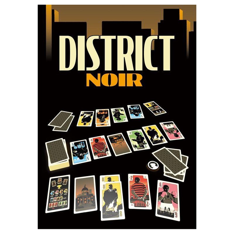Dans District Noir vous devez avoir, à l'issue des 4 manches, plus de points que votre adversaire en récupérant une majorité de cartes Soutiens. Vous pouvez également l'emporter immédiatement en contrôlant les trois cartes Ville (qui représentent les lieux stratégiques de la ville).
