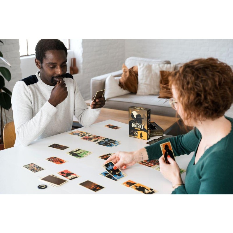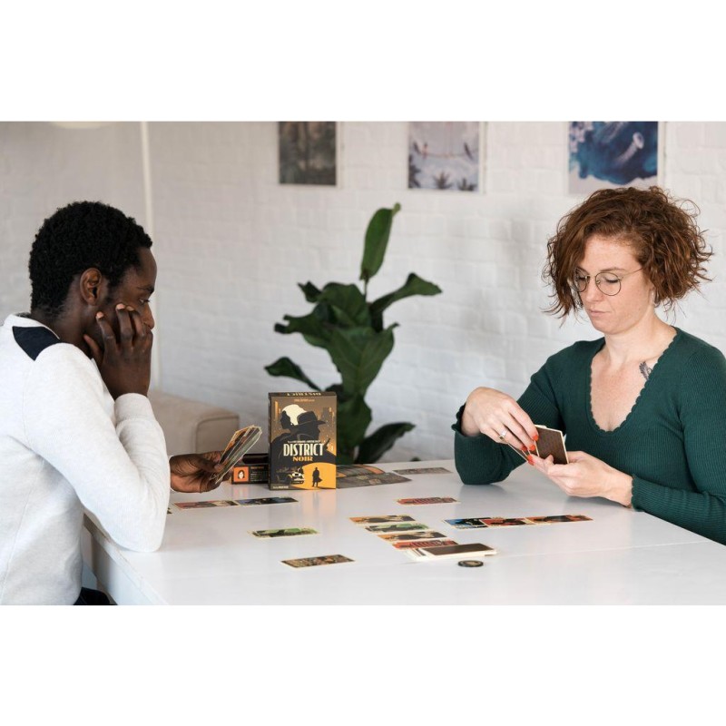 District Noir est un jeu dans lequel il faudra faire appel à son sens tactique puisqu'il faudra gérer du mieux possible sa main de cartes. En effet, les cartes que l'on possède en main sont d'abord posées au centre de la table et pourront donc être récupérées par soi comme par l'adversaire. Il va falloir également avoir le sens du timing : quelles cartes je pose et dans quel ordre ? à quel moment est-ce que je récupère des cartes ? District Noir est aussi un jeu avec de la prise de risque et du bluff. Il faudra essayer d'amener son adversaire à faire de mauvais choix. Enfin il y a une vraie tension qui s'installe car les joueurs pourront parfois l'emporter immédiatement en rassemblant certaines cartes. Mais ce qui reste le plus intéressant c'est qu'on va pouvoir ressentir cette expérience de jeu dans des parties de seulement 15 minutes et avec des règles extrêmement simples.