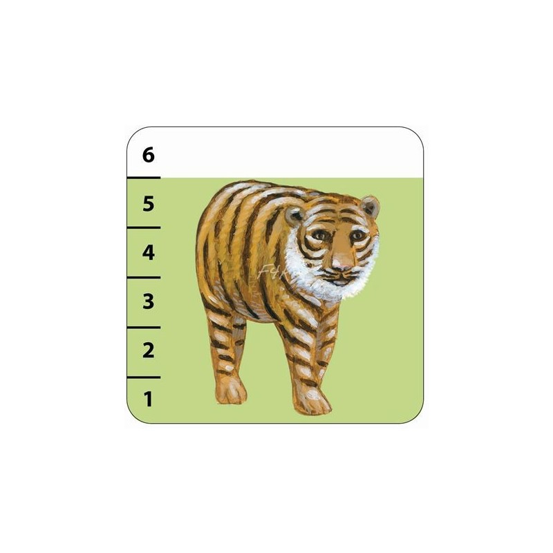 Cartes graduées de 1 à 6. Pour les plus petits, pas besoin de savoir compter, il suffit de comparer la taille des animaux !