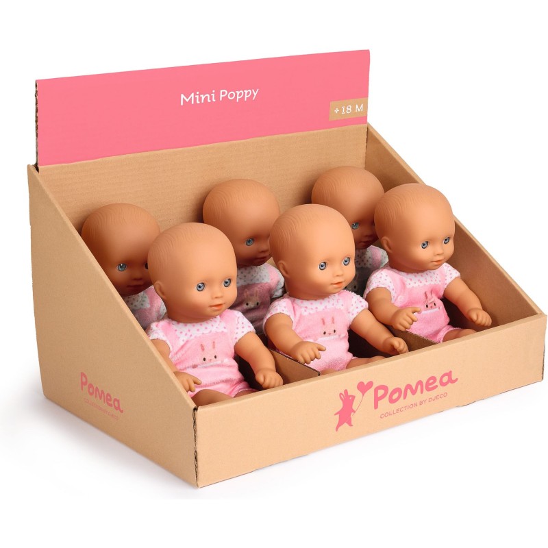 Craquez pour les Mini Pomea. Ces poupons plein de charme et aux visages rieurs mesurent à peine 20 cm. Ils ont des corps moelleux imprimés comme de vrais habits qui les rendent irrésistibles. Légers, doux et faciles à transporter, les Mini Pomea sont idéaux pour être câlinés et chéris partout où les enfants décideront de les emporter.