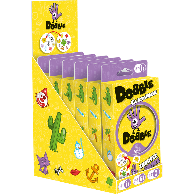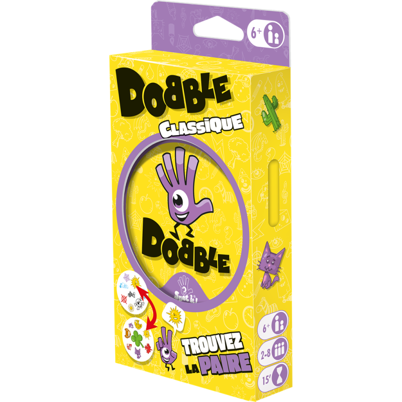 Dobble, le jeu vendu à plus de 10 millions de jeux vendus dans le monde, arrive dans une nouvelle présentation ! Dans Dobble, il y a toujours un et un seul symbole identique entre chaque carte. Repérez-le plus vite que vos adversaires pour gagner la partie !
