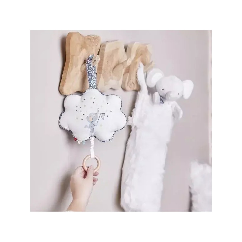 Associez le doudou marionnette au coussin musical assorti sur le thème de "Brille, brille petite étoile", et agitez l'éléphant sur le rythme de la mélodie ! Idéale pour l'éveil musical de bébé, la boîte à musique en tissu complète à merveille la marionnette avec ces broderies sur le thème de la comptine.