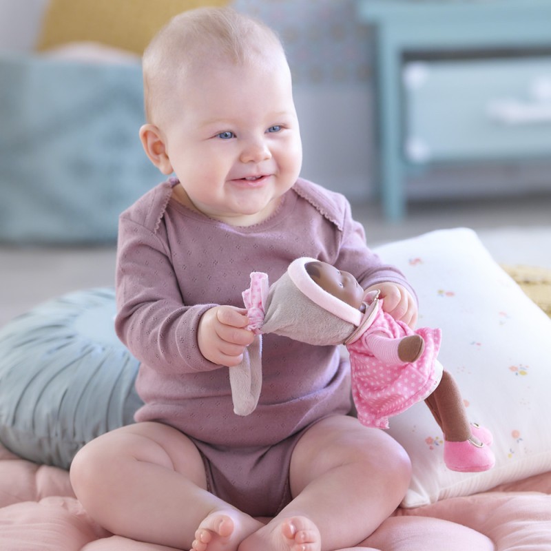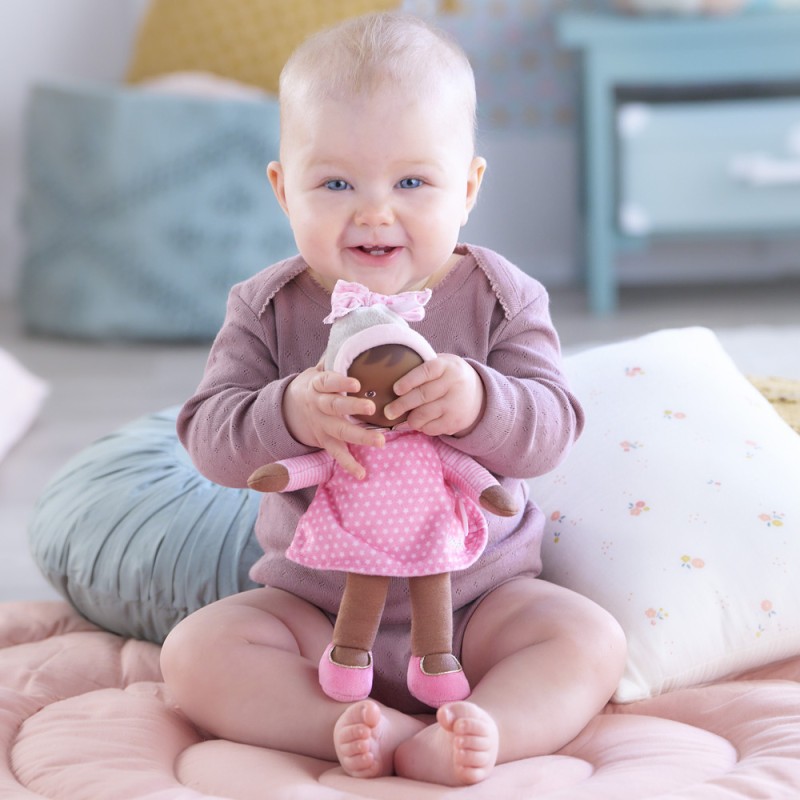Ma Miss et moi, on est inséparables. Car même si je l’oublie quelque part, on me la rendra : elle possède une étiquette pour écrire mon prénom ou le numéro de téléphone de mes parents. Le doudou Miss Rose Rêves d'Étoiles, à la peau noire et les yeux marron peints.