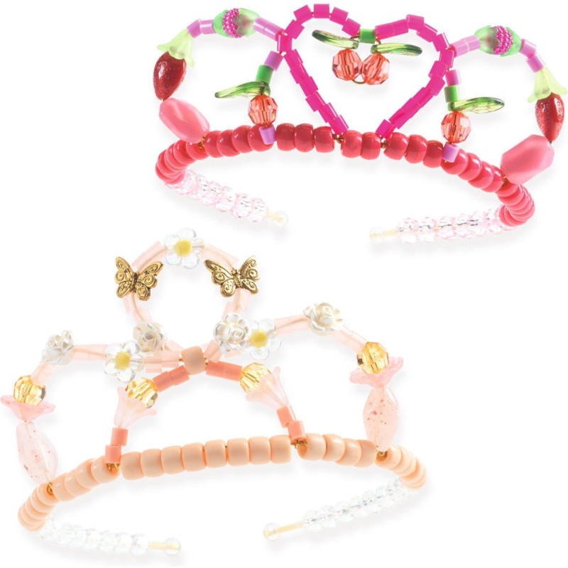 Un kit complet avec 240 perles variées, 2 serre-têtes dorés et du fil métallisé souple pour réaliser 2 superbes tiares.