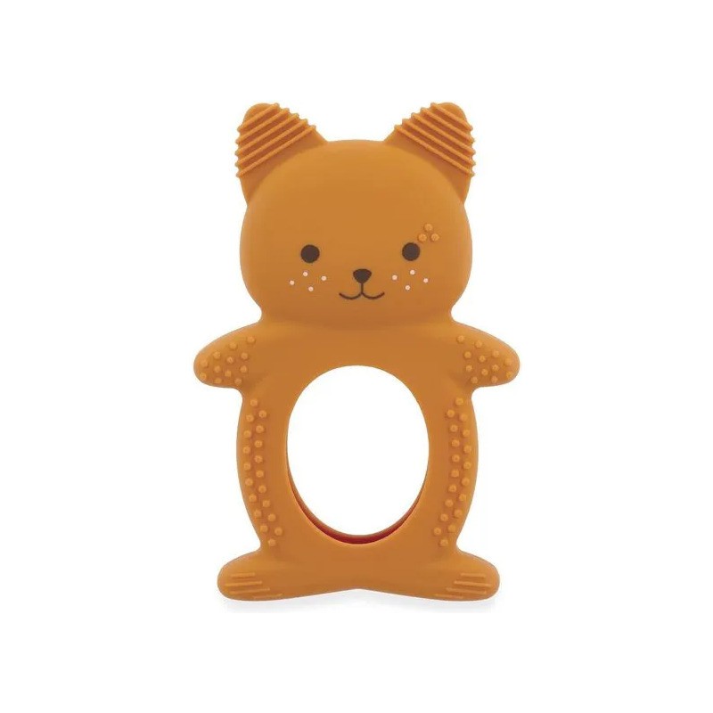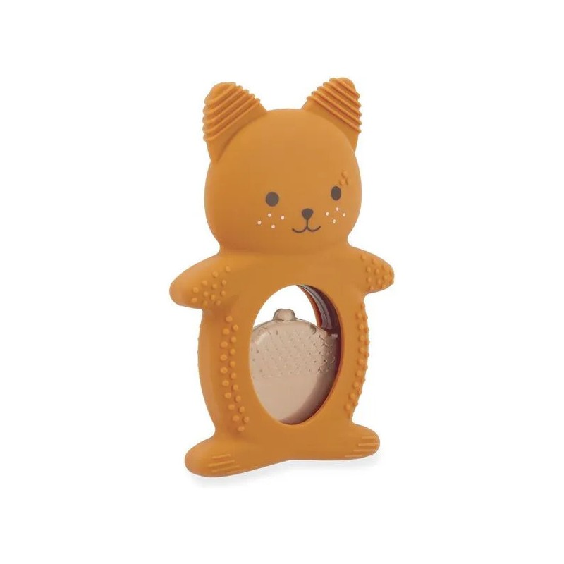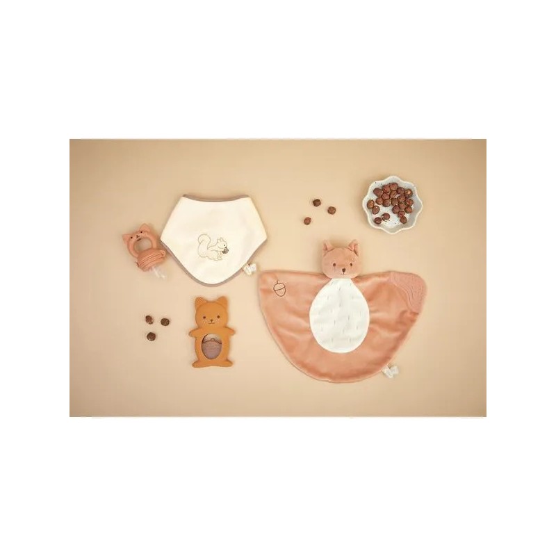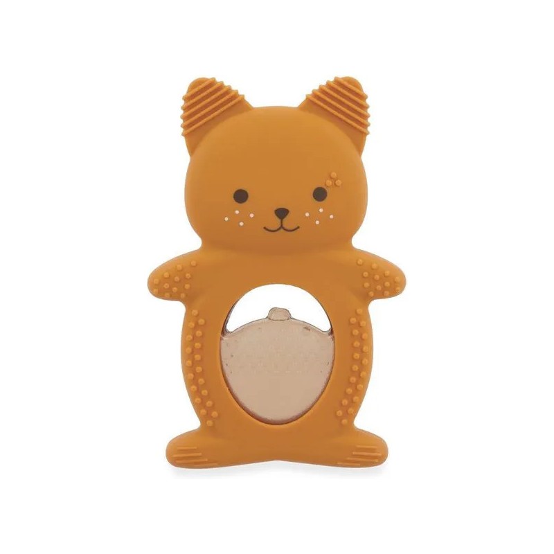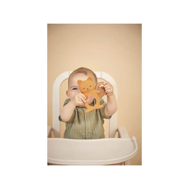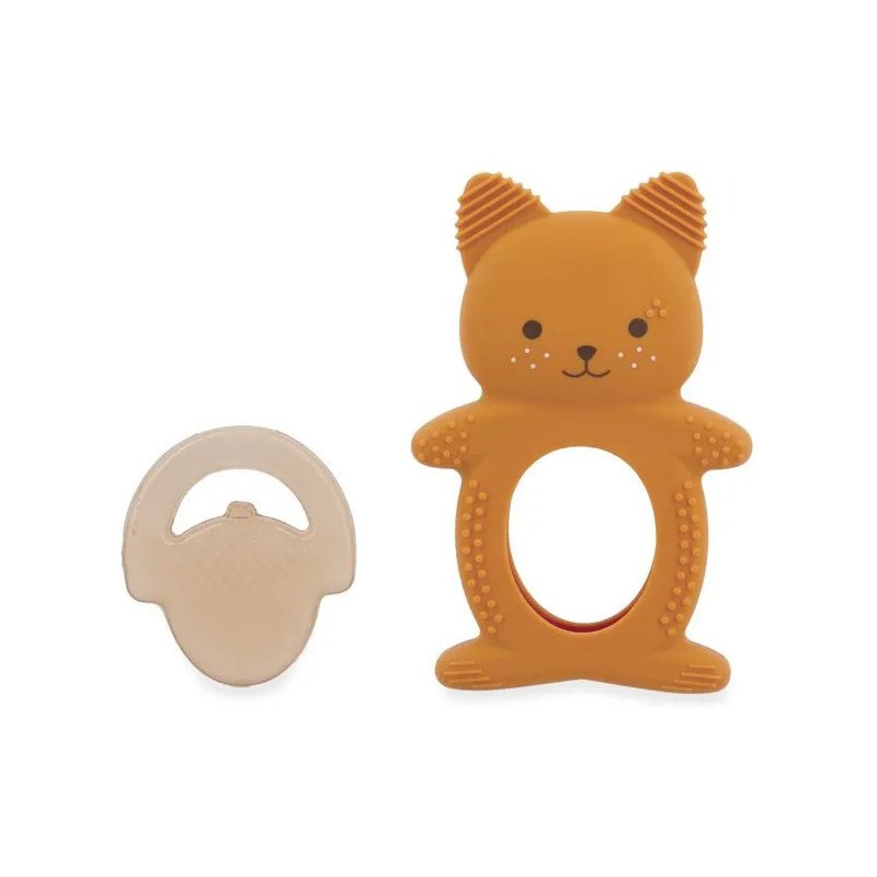 Soulagez les premières poussées dentaires de bébé avec ce duo de dentition réfrigéreant en forme d'écureuil ! Il contient un anneau souple en silicone avec des motifs variées et un anneau réfrigéré en forme de noisette qui peut se placer au réfrigérateur. Facile d'utilisation, il suffit de placer le fruit au réfrigérateur 10 à 20 minutes maximum et de laisser bébé le mâchouiller et ainsi soulager ses gencives sensibles. Lorsque les dents travaillent, le froid permet de calmer efficacement ! Cette action ciblée apporte un véritable réconfort pour votre tout-petit et aide à atténuer les pleurs causés par les poussées dentaires. Attention, il est déconseillé de mettre le fruit au congélateur : il serait bien trop froid pour bébé. Facile à attraper pour les petites mains, le fruit peut être manipulé seul ou accompagné de l'écureuil. Évolutif, cet anneau de dentition en silicone souple accompagne bébé dans différentes étapes de son développement. La forme de l'écureuil le rend facile à saisir pour l'enfant, favorisant sa motricité fine. Les picots et rainures présents sur les oreilles et le corps de l'écureuil offrent une stimulation douce idéale lorsque les poussées dentaires sont moins douloureuses. C'est parfait pour continuer à soulager les gencives tout en éveillant le toucher grâce aux textures variées. Un tendre petit écureuil et son fruit à croquer : c'est le duo parfait pour calmer les petits inconforts des poussées dentaires de bébé ! Adapté aux bébés dès 3 mois, ce duo dentition et réfrigérant fait partie de la collection Grignoti : une gamme conçue pour soulager les maux liés aux poussées dentaires de bébé grâce à des compagnons grignoteurs qui invitent à mâchouiller et mordiller, tout en développant l'éveil gustatif.