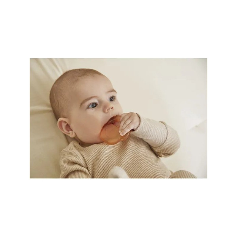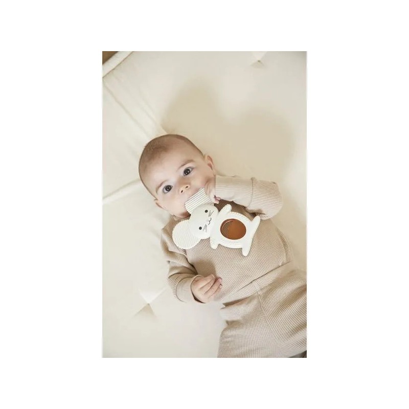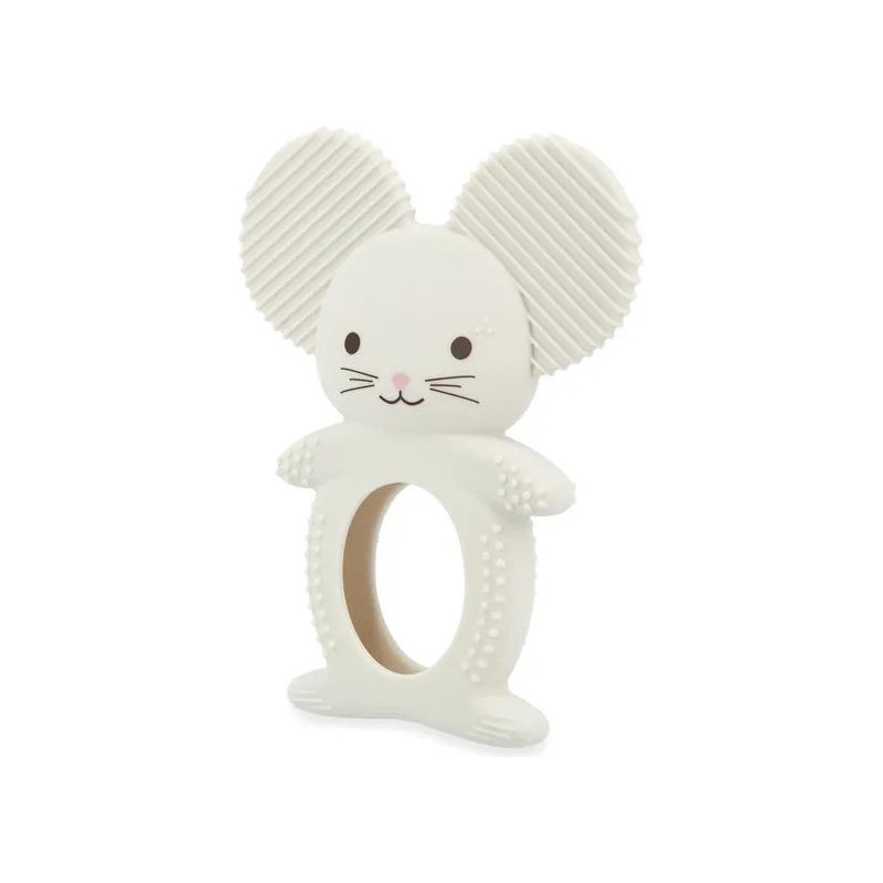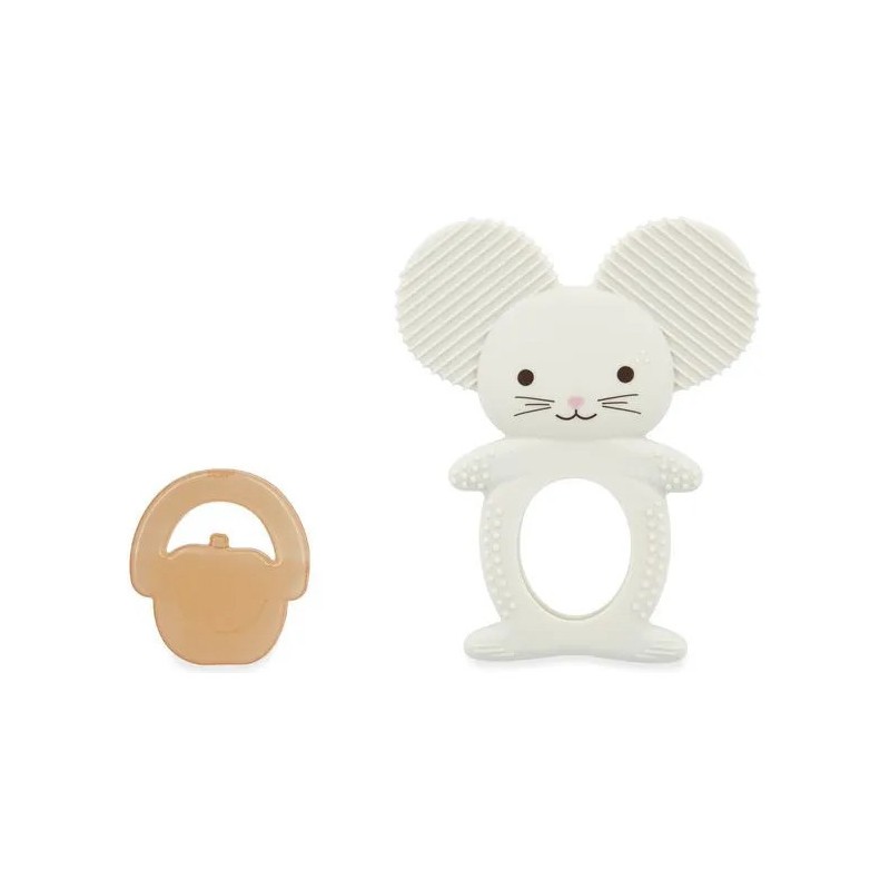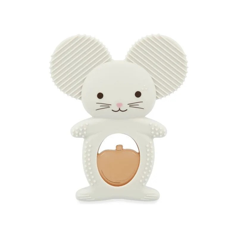 Soulagez les premières poussées dentaires de bébé avec ce duo de dentition réfrigéreant en forme de souris ! Il contient un anneau souple en silicone avec des motifs variées et un anneau réfrigéré en forme de pomme qui peut se placer au réfrigérateur. Facile d'utilisation, il suffit de placer le fruit au réfrigérateur 10 à 20 minutes maximum et de laisser bébé le mâchouiller et ainsi soulager ses gencives sensibles. Lorsque les dents travaillent, le froid permet de calmer efficacement ! Cette action ciblée apporte un véritable réconfort pour votre tout-petit et aide à atténuer les pleurs causés par les poussées dentaires. Attention, il est déconseillé de mettre le fruit au congélateur : il serait bien trop froid pour bébé. Facile à attraper pour les petites mains, le fruit peut être manipulé seul ou accompagné de la souris. Évolutif, cet anneau de dentition en silicone souple accompagne bébé dans différentes étapes de son développement. La forme de la souris la rend facile à saisir pour l'enfant, favorisant sa motricité fine. Les picots et rainures présents sur les oreilles et le corps de la souris offrent une stimulation douce idéale lorsque les poussées dentaires sont moins douloureuses. C'est parfait pour continuer à soulager les gencives tout en éveillant le toucher grâce aux textures variées. Une tendre petite souris et son fruit à croquer : c'est le duo parfait pour calmer les petits inconforts des poussées dentaires de bébé ! Adapté aux bébés dès 3 mois, ce duo dentition et réfrigérant fait partie de la collection Grignoti : une gamme conçue pour soulager les maux liés aux poussées dentaires grâce à des compagnons grignoteurs qui invitent à mâchouiller et mordiller, tout en développant l'éveil gustatif.