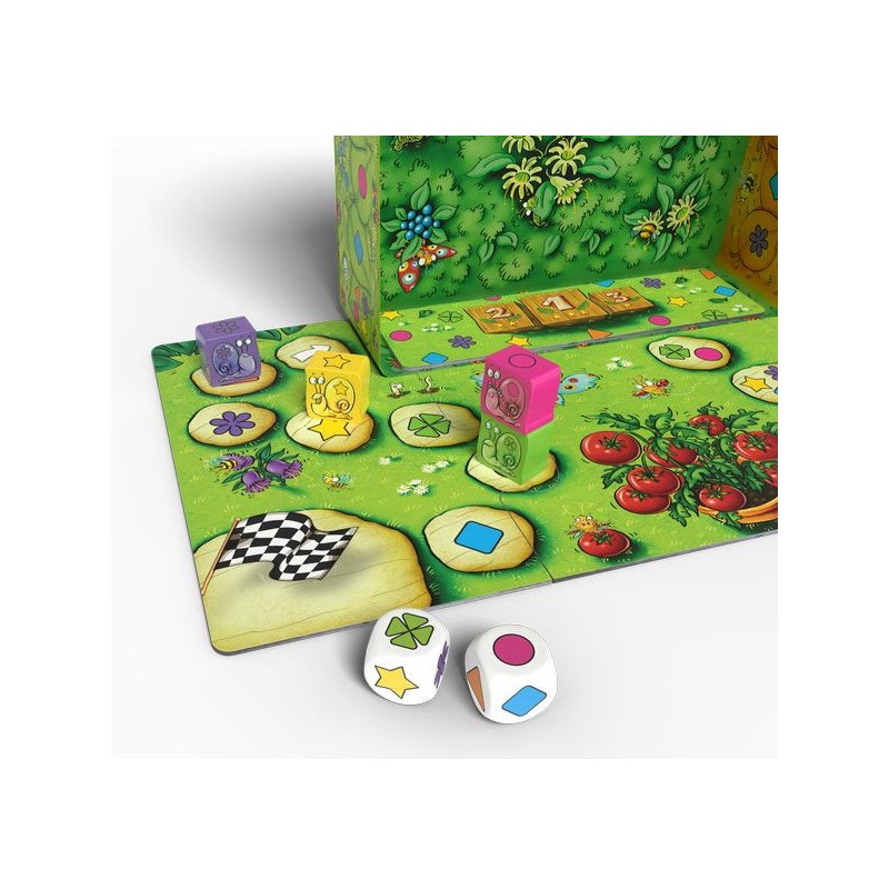 Après avoir lancé les dés, choisissez l’escargot que vous souhaitez faire avancer. Faites bien attention, seuls ceux présents sur votre carte de favoris vous feront gagner des points en fin de partie. Morale de l’histoire : avancez vite mais avancez bien !