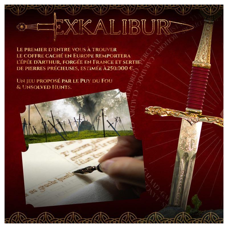L'objectif de ce jeu captivant Excalibur est de localiser en premier l'emplacement d'un coffre mystérieusement enterré quelque part en Europe de l'Ouest. Celui qui réussira à résoudre les énigmes et à déchiffrer les indices pour découvrir l'emplacement exact du coffre remportera un prix inestimable : l'épée du roi Arthur, un joyau d'orfèvrerie estimé à 250.000 €. Une aventure palpitante où stratégie, réflexion et un peu de chance seront nécessaires pour mettre la main sur ce trésor légendaire.