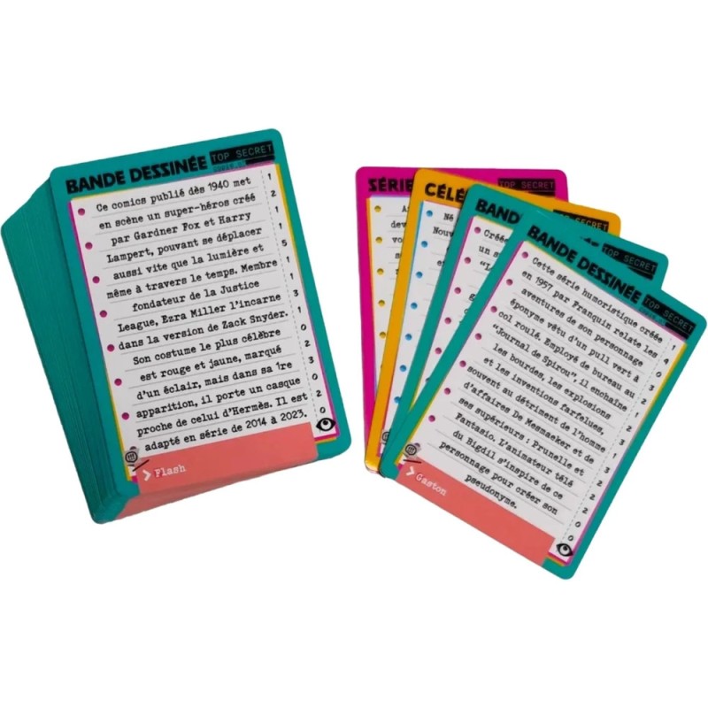 Tentez de faire deviner votre document classifié en rayant les lignes superflues directement sur votre carte. Lisez ce qu’il reste à voix haute, mais attention à laisser suffisamment d’informations pour que vos coéquipiers devinent !