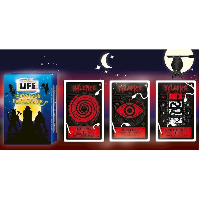 Chaque joueur incarne un personnage fantastique durant toute la partie : sirène, fée, magicien, sorcière, vampire, démon... Chaque personnage bénéficie de pouvoir permanents et éphémères. Les pouvoirs éphémères ne peuvent se produire que durant les éphémérides (réprésentées par des lunes que l'on pioche). - Prenez une carte au hasard parmi les dix personnages du jeu. Posez celui-ci devant vous, face visible, pour l’incarner durant toute la partie. Ajoutez les cartes de l’extension au jeu de base. Chaque joueur dispose de 5 cartes en main... Chacun son tour pioche et joue une carte de sa main. Les joueurs peuvent cumuler des smiles en posant des cartes face à eux, ou infliger des malus aux adversaires. Les personnages ont des pouvoirs permanents et éphémères. Les pouvoirs éphémères s’utilisent uniquement lors de certaines éphémérides, piochées en cours de jeu.