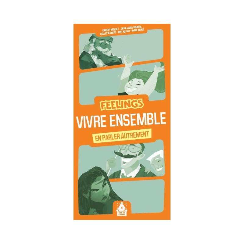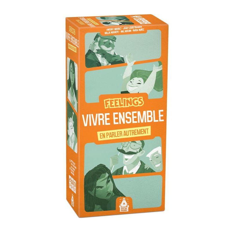 Feelings se décline désormais en cinq nouveaux opus : Feelings Harcèlement, Feelings Malvoyance, Feelings Addictions, Feelings Bien-être animal et Feelings Vivre ensemble. Cinq outils ludopédagogiques conçus pour accompagner les professionnel·les dans l’animation de discussions autour de sujets de société sensibles et essentiels. Feelings Vivre ensemble aborde les émotions qui façonnent notre façon de cohabiter avec les autres, dans la diversité des liens que nous tissons : en famille, à l’école, en couple, entre ami·es, collègues, voisin·es, ou même dans notre rapport à l’environnement. Le jeu invite à réfléchir à ce qui favorise le respect, la coopération et la compréhension mutuelle dans les différentes sphères du quotidien. Une manière ludique et bienveillante d’interroger nos réactions face aux différences, aux conflits, aux injustices… et aux élans de solidarité. Le jeu reprend la mécanique de Feelings : une carte Situation, en lien avec la vie en société, est lue à voix haute. Chaque personne autour de la table choisit l’une des six cartes Émotion disposées autour du plateau pour exprimer ce qu’elle ressentirait dans cette situation. Le défi est alors de deviner l’émotion choisie par une autre personne… avant que quelqu’un ne tente de deviner la vôtre. Plus vous serez en phase les un·es avec les autres, plus vous progresserez sur la piste de l’empathie.