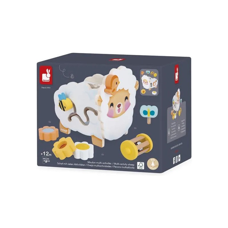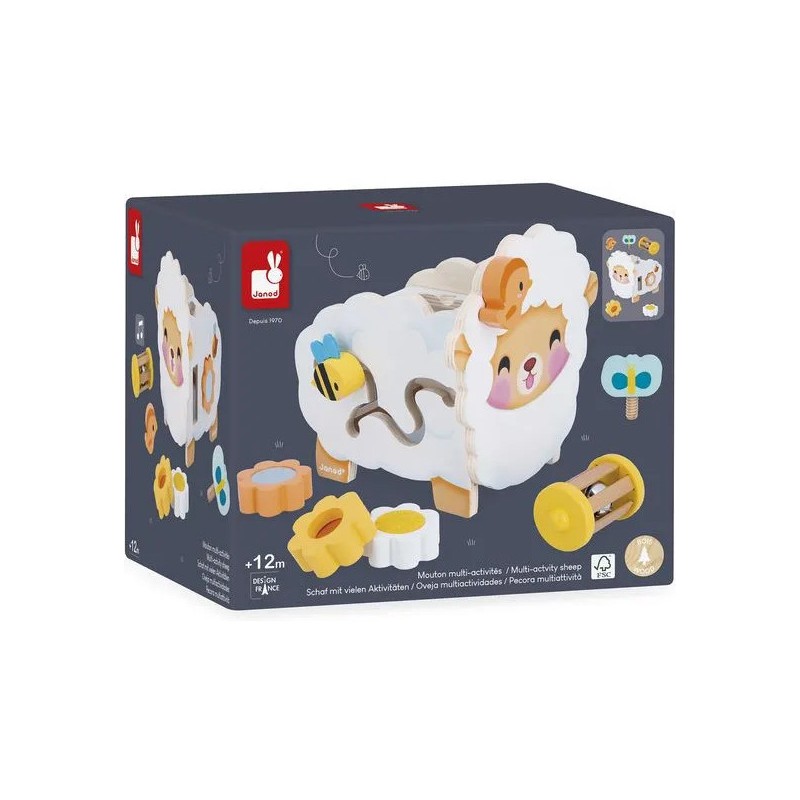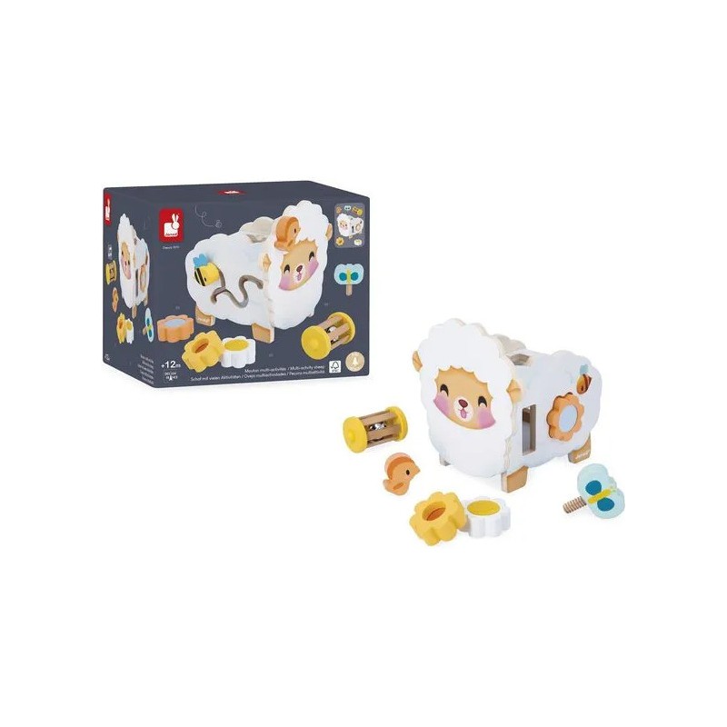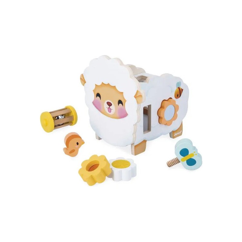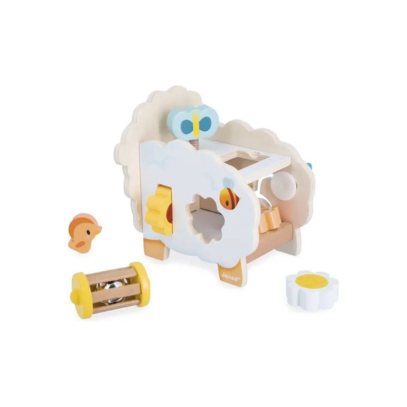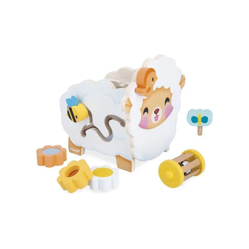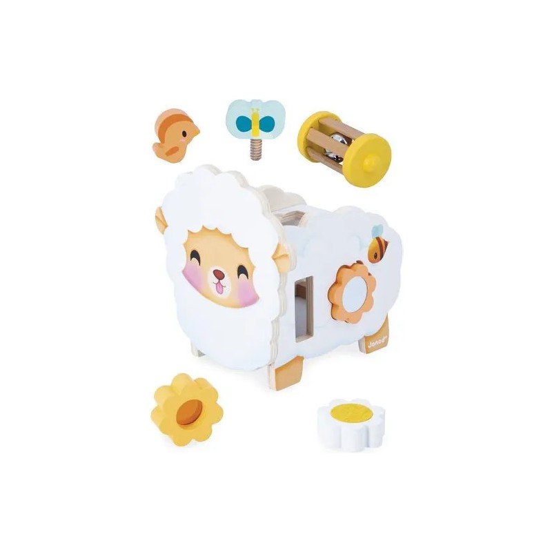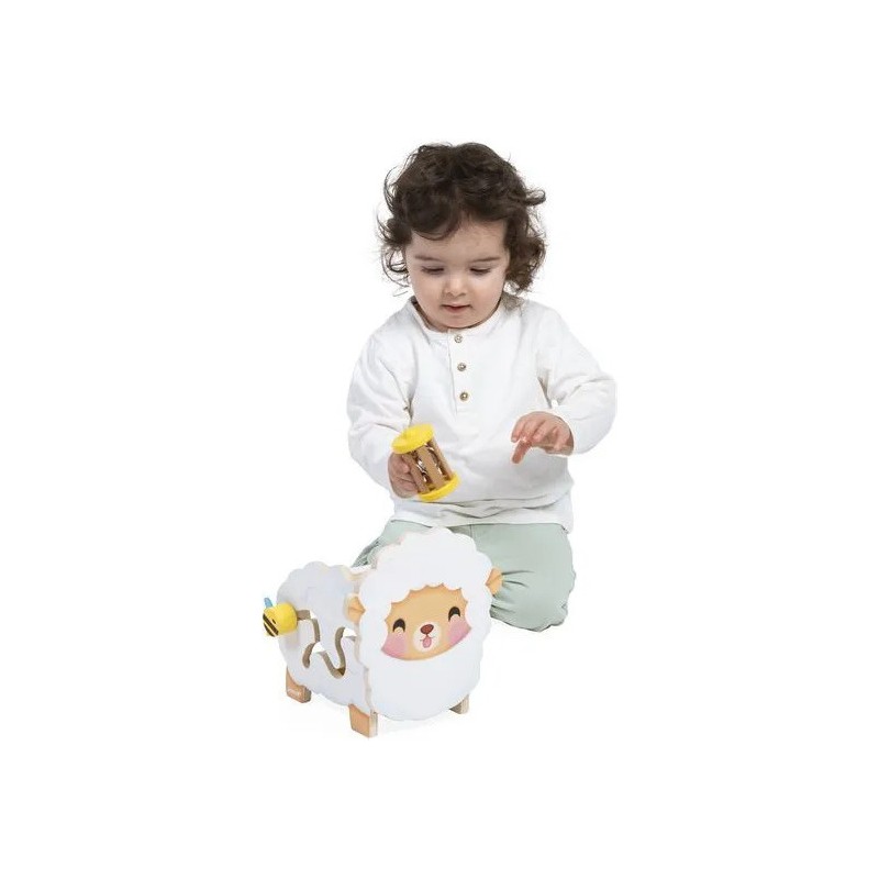 Qu'il est mignon ce mouton en bois à l'allure champêtre ! Fleurs, abeille, papillon… toute la nature est au rendez-vous ! Ce mouton multi-activités propose de nombreux jeux qui vont plaire aux enfants dès 12 mois. Sur le devant, niché au niveau de sa tête, se trouve un petit oiseau magnétique que l'enfant peut s'amuser à enlever et à remettre à sa guise.