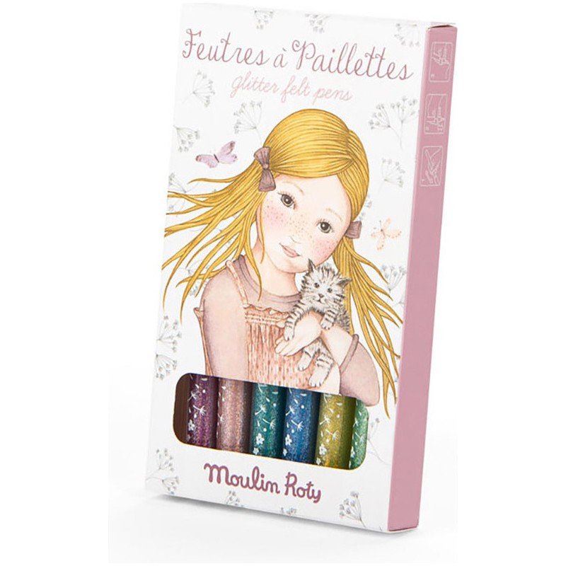Feutres 6 pcs - Paillettes - Les Rosalies - Moulin Roty