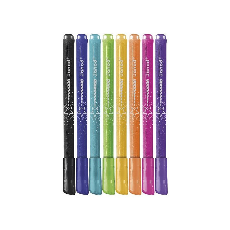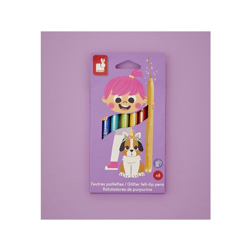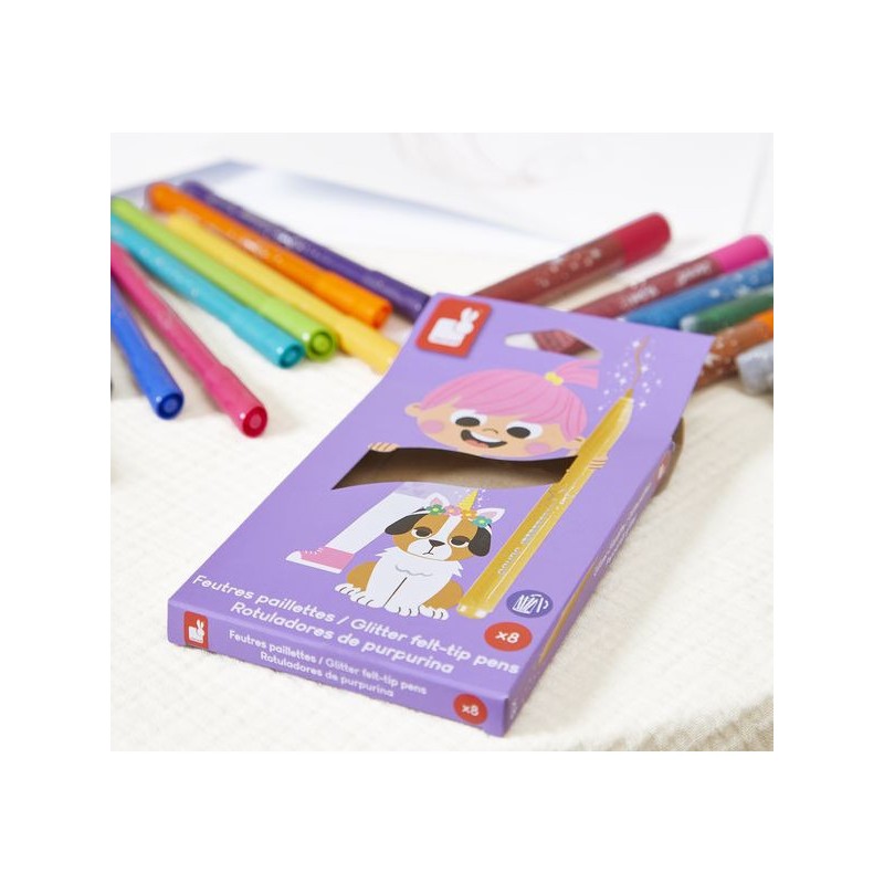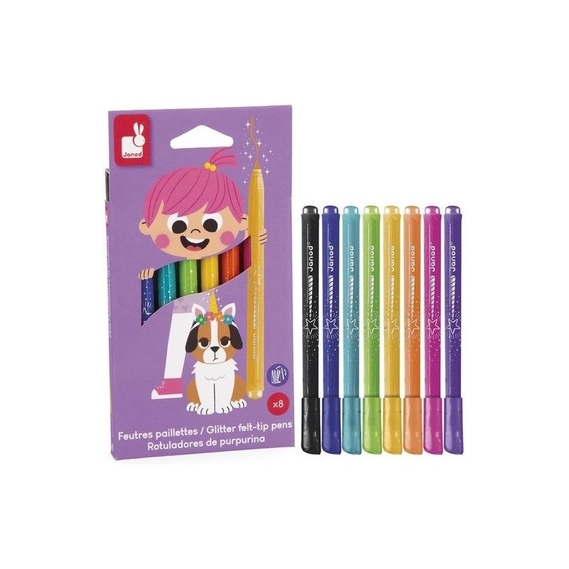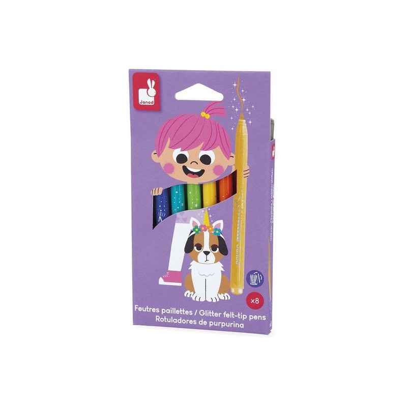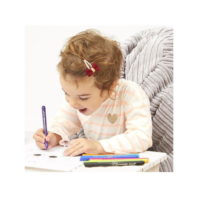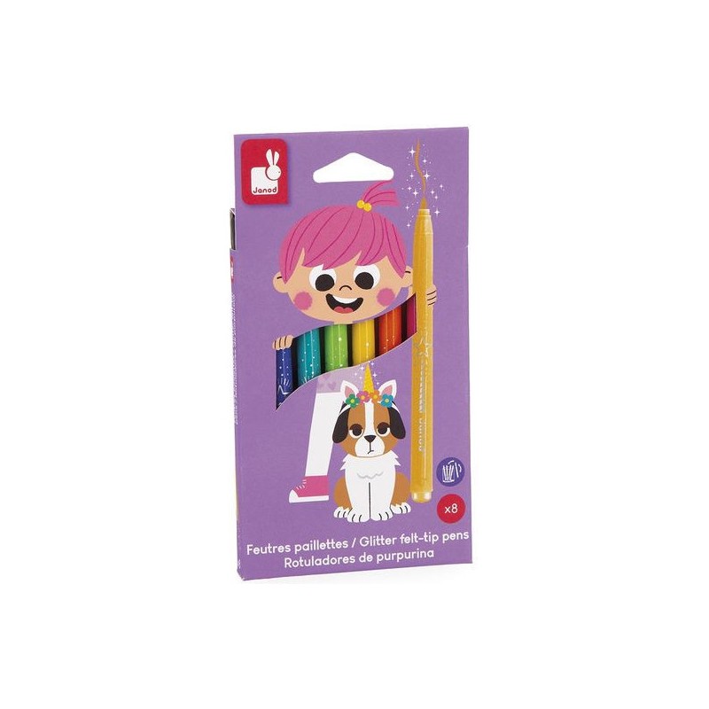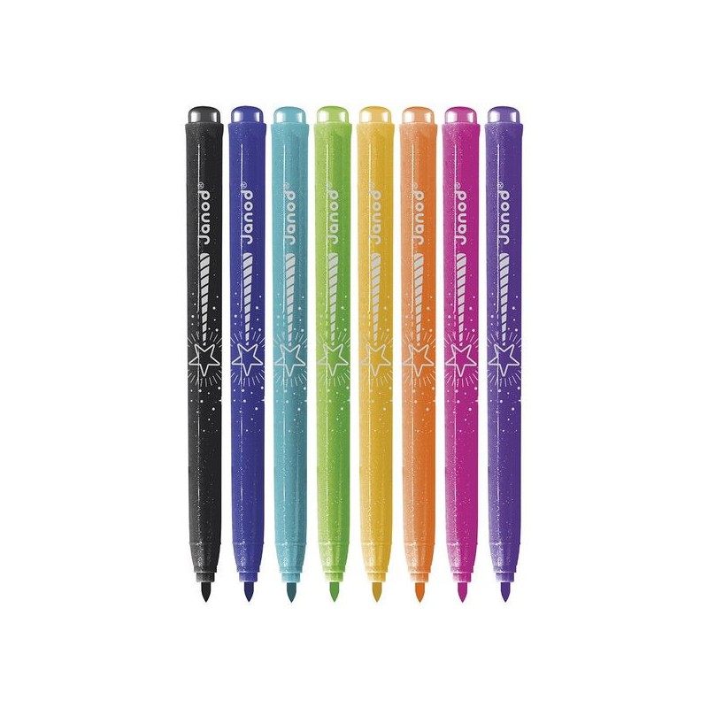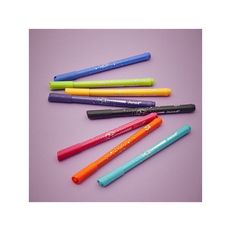 Donnez de l’éclat aux dessins ! Adaptés aux enfants à partir de 3 ans, ces 8 feutres pailletés offrent une palette de couleurs lumineuses, avec une touche de brillant, pour de fabuleux dessins. Ils offrent une forte densité de paillettes, idéal pour les petits artistes qui aiment ajouter de la magie à leurs créations ! Ce pack de feutres à paillettes est un indispensable pour des créations festives. Du noir, du bleu foncé, du bleu clair, du vert, du jaune, de l’orange, du rose, du violet : c’est un arc-ciel de couleurs, avec option Paillettes ! En écrivant comme en dessinant, tout a l’air bien plus féérique ! Les feutres doivent être rangés pointe vers le bas pour garantir l'effet pailleté dès leur utilisation. On adore la boîte réutilisable, pour ranger facilement les feutres après chaque session de coloriage ! Quand ils dessinent, les enfants développent leur motricité fine et leur créativité. En progressant, ils ajoutent des détails et adorent les feutres avec un côté « Waouh » ! Ce kit de 8 feutres pailletés fait partie de notre gamme « Colo », une collection complète d’articles de coloriage, pour des moments créatifs hauts en couleur dès le plus jeune âge.
