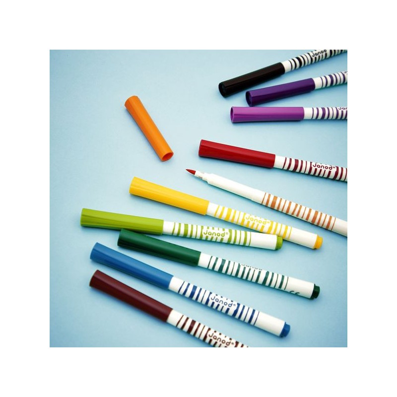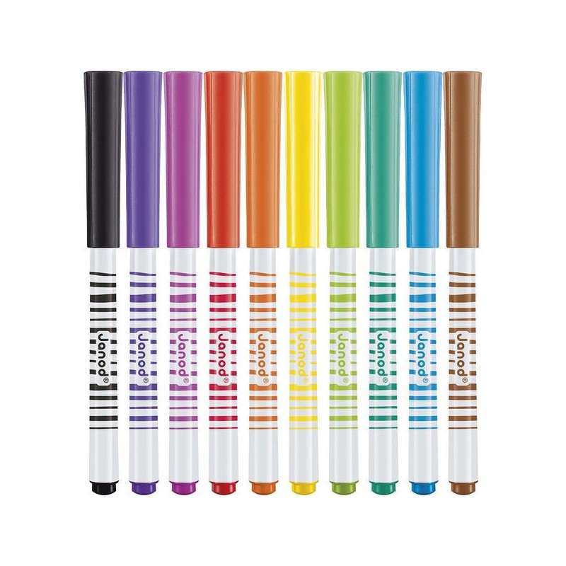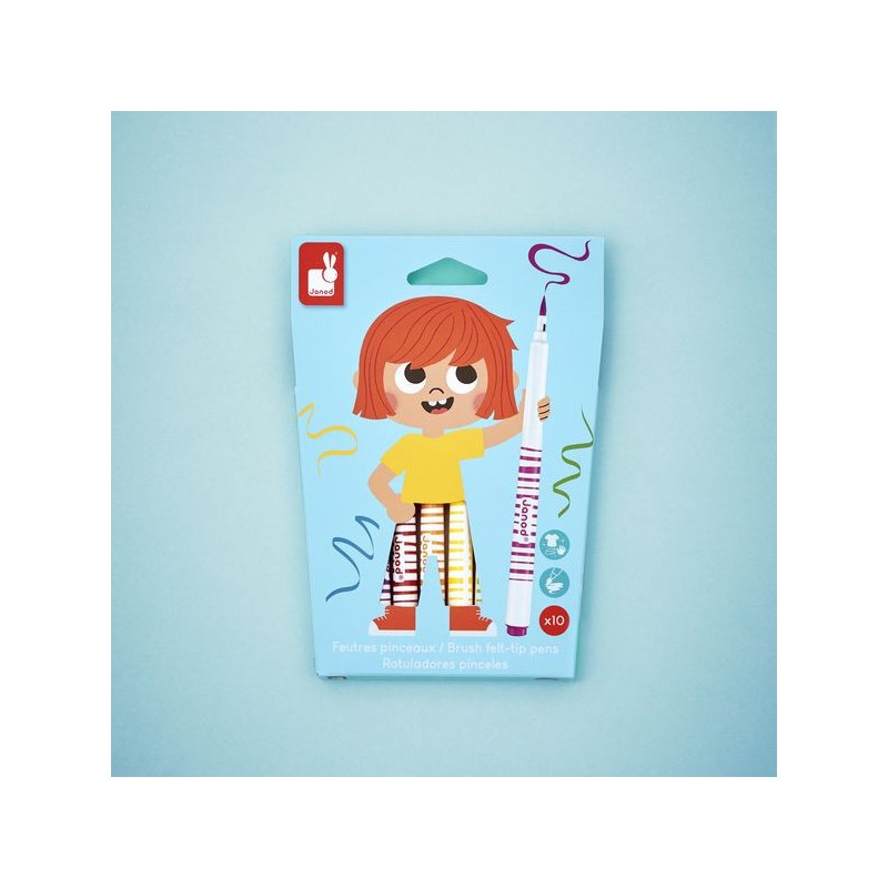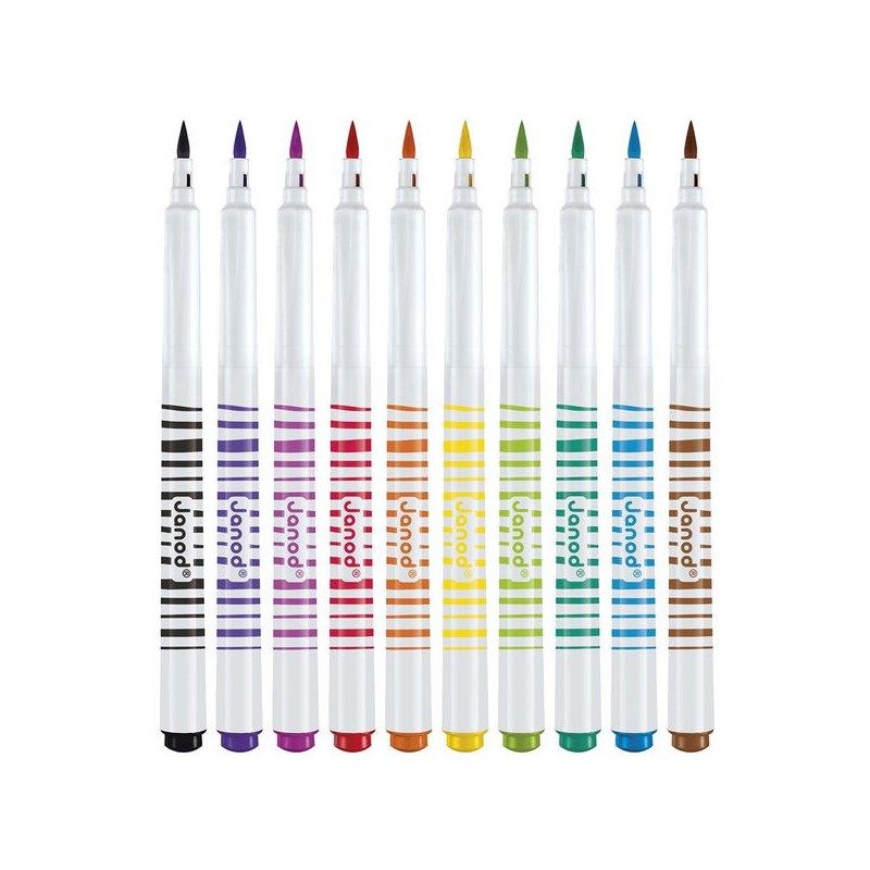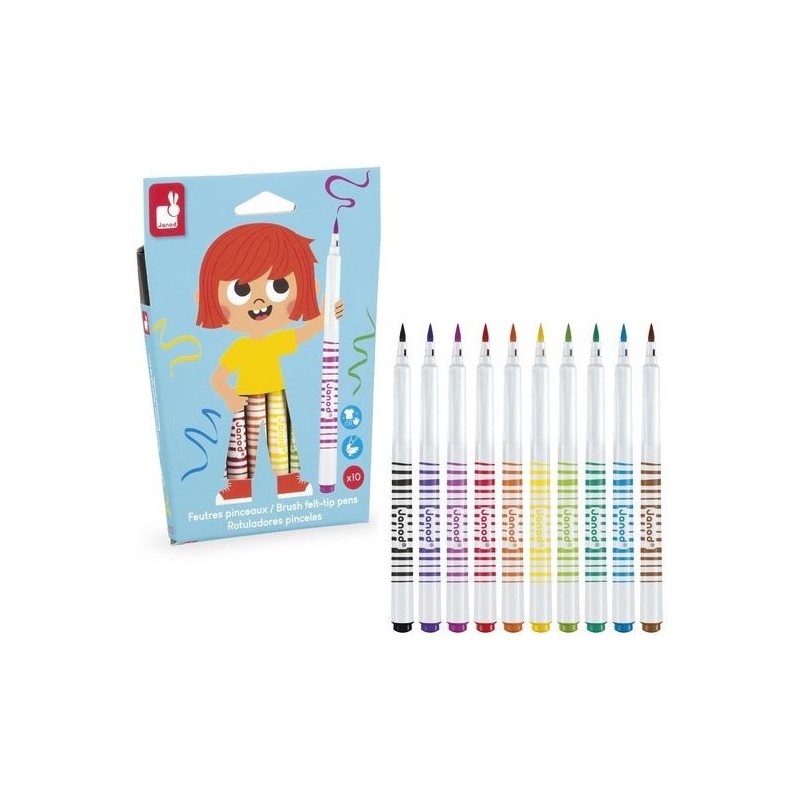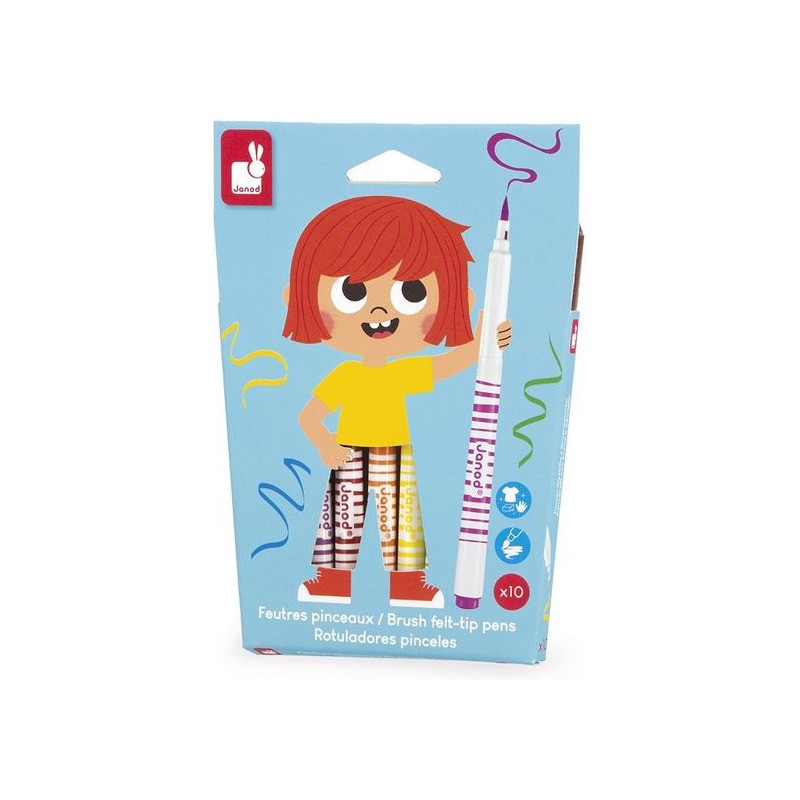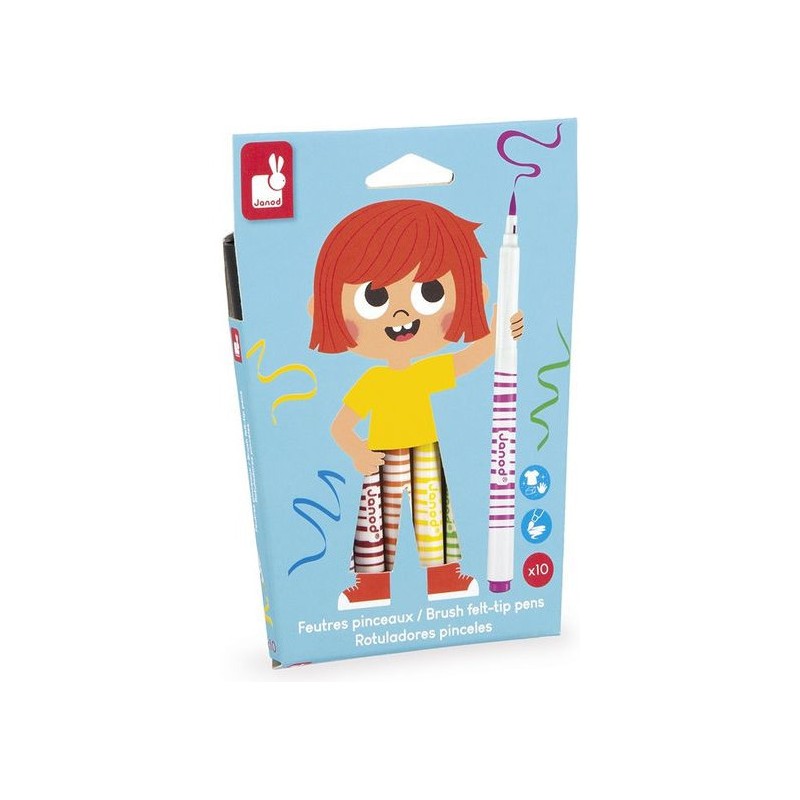 Donnez de l’effet aux dessins avec ces feutres pinceaux ! Adaptés aux enfants à partir de 3 ans, ces 10 feutres pinceaux offrent une palette de couleurs vives qui donnent vie aux croquis. Leur pointe souple donne l’impression d’utiliser un pinceau pour tracer les lignes, idéal pour agrémenter ses dessins de jolis rubans ou autres confettis. Ce pack de feutres pinceaux est un indispensable pour les petits artistes. Du noir, du violet, du rose, du rouge, de l’orange, du jaune, du vert, du turquoise, du bleu, du marron : c’est un arc-ciel de couleurs ! L’encre est facilement lavable, pour exprimer sa créativité sans souci. On adore la boîte réutilisable, pour ranger facilement les feutres après chaque session de coloriage ! Quand ils dessinent, les enfants développent leur motricité fine et leur créativité. En progressant, ils ajoutent des petits détails et adorent les feutres avec un côté « Waouh » ! Ce kit de 10 feutres pinceaux fait partie de notre gamme « Colo », une collection complète d’articles de coloriage, pour des moments créatifs hauts en couleur dès le plus jeune âge.
