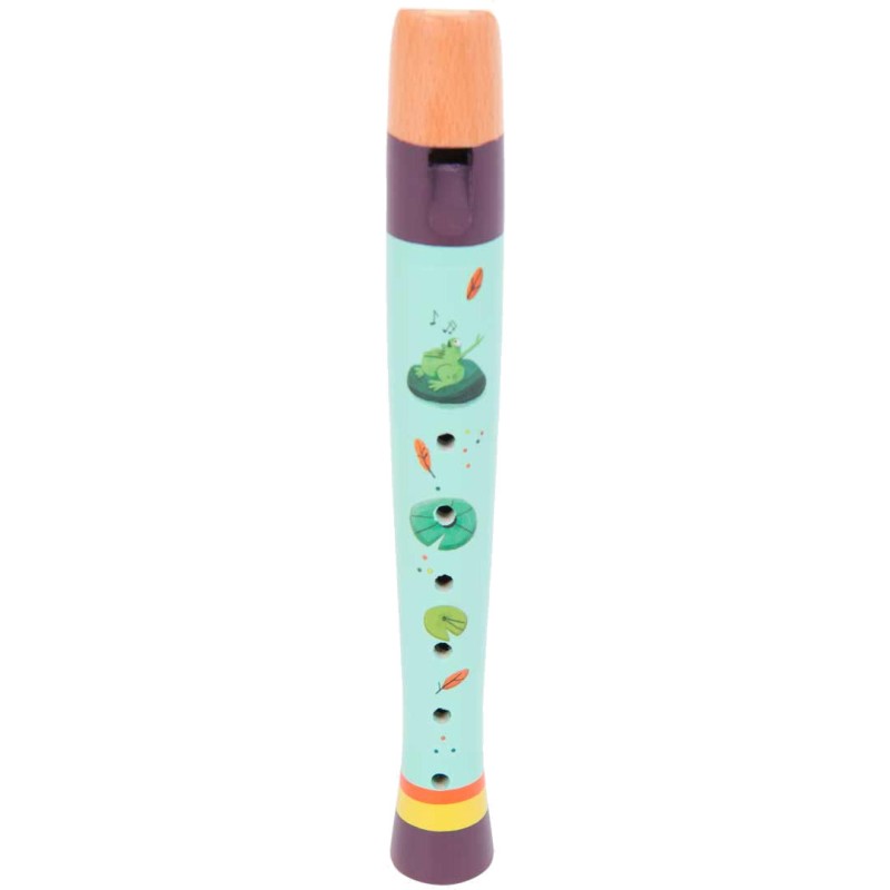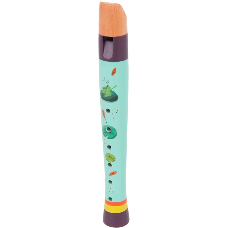 Flûte en bois à 6 trous, colorée de vert d'eau et violet, aux illustrations joyeuses et dansantes avec plumes et confettis dessinés. Elle aidera les tout-petits à développer le rythme et l'éveil musical, et s'adapte aux petites mains dès 2 ans. Dans la Jungle, Pakou, Zimba, Koco et Paloma s’amusent entre les feuilles de bananiers, la partie de cache-cache est lancée !