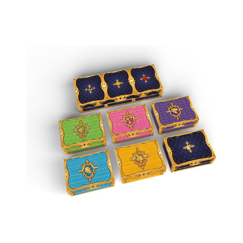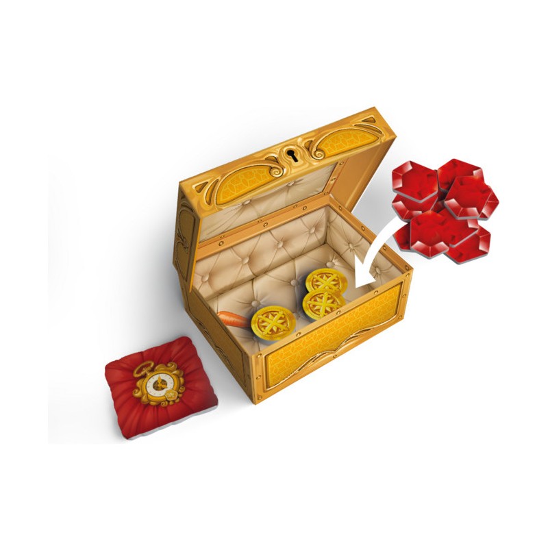 Ce faisant, gagnez des pièces d’or ou des rubis, faites-en perdre à vos adversaires, gagnez des places sur la piste d’influence, lancez le dé magique, etc. À chacun des quatre tours, les cartes mercenaires s’ajoutent et la pioche augmente, augmentant les effets qui perturberont les stratégies de vos adversaires. À la fin de la partie, le joueur le plus riche sera couronné et dirigera le royaume !