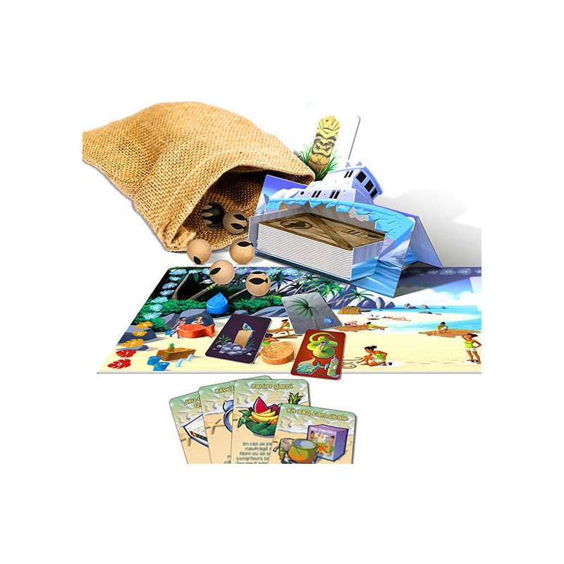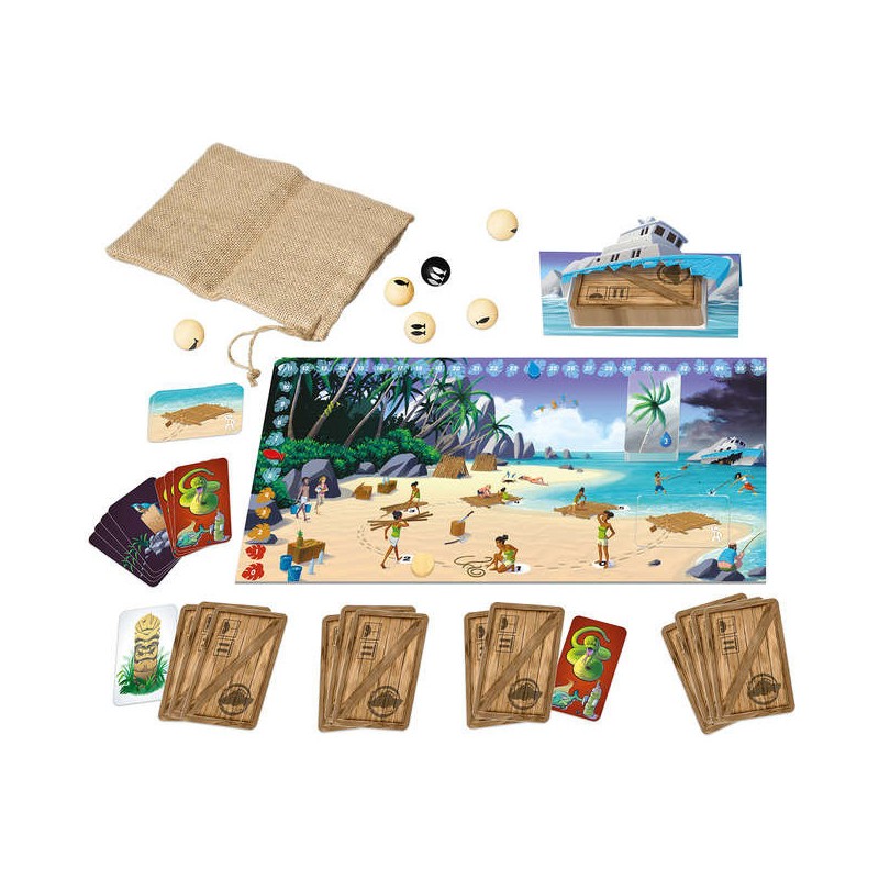 A chaque tour les joueurs naufragés devront choisir une action parmi quatre : pêcher, recueillir de l’eau, chercher du bois ou fouiller l’épave du bateau. Faites équipe pour survivre mais soyez prêt à sacrifier vos camarades en cas de pénurie. Un jeu presque coopératif où vous devrez être aussi fourbe que diplomate pour vous garantir une place pour le voyage retour !!