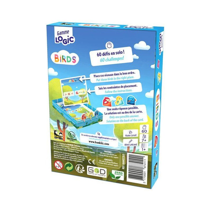 La gamme Bankiiiz Logic vous propose des défis intelligents et progressifs, dans des univers colorés aux réflexions variées. Dans Birds, vous devrez mettre des oiseaux sur un fil magique en fonction de leurs demandes. À vous de résoudre toutes les contraintes pour trouver l'unique bon ordre.