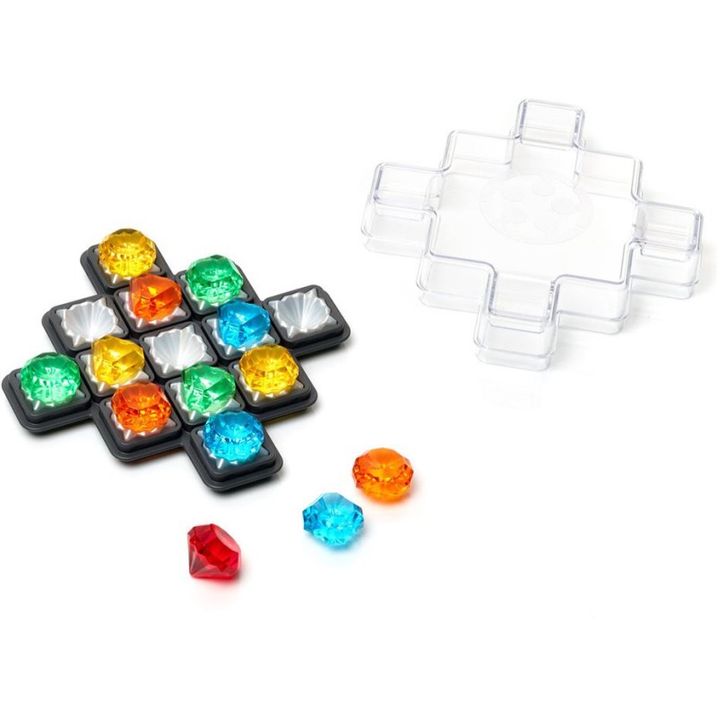 Entrez dans la mine de diamants, déterrez toutes les gemmes et trouvez la position du diamant rouge. Pour chaque défi, aidez vous de la mine d’informations offertes par les indices. Plus vous creusez, plus vos capacités de déduction seront mises à l’épreuve ! Avec chaque mission, vous obtenez une position de départ et un ou plusieurs indices. Les instructions pour une mission peuvent porter sur la couleur ou la forme des bijoux et sur l'emplacement par rapport aux autres bijoux. Votre objectif est de placer correctement tous les bijoux orange, jaune, vert et bleu sur le plateau de jeu afin que l'emplacement du diamant rouge soit connu. Ce diamant appartient au dernier espace qui reste ouvert. Il n'y a qu'une seule option à la fois.