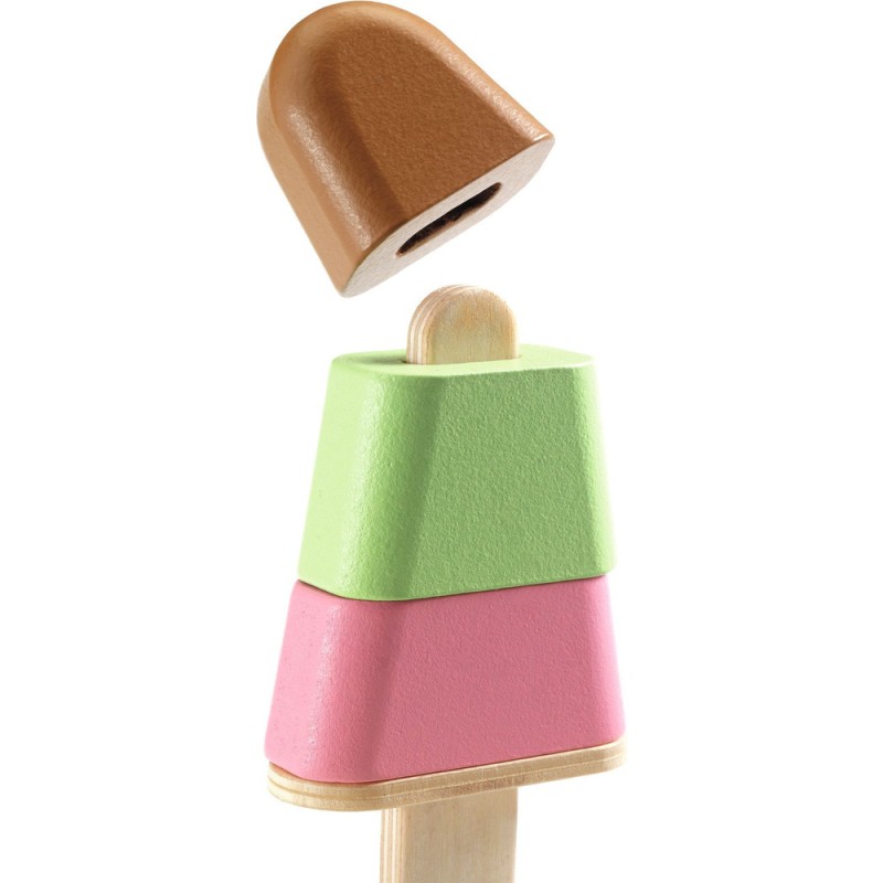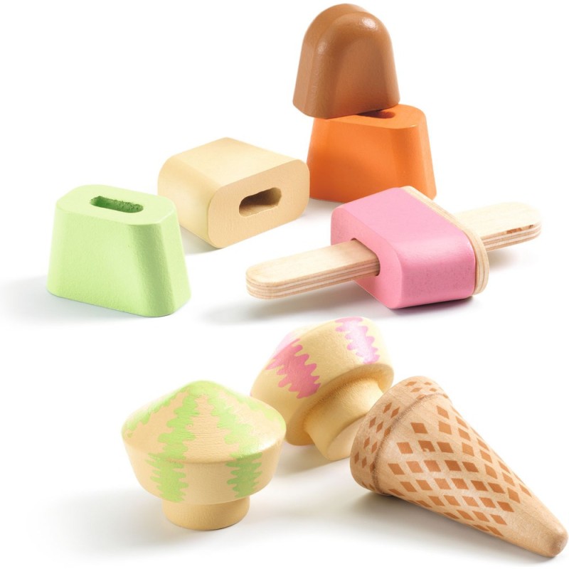 Le nouveau glacier à la mode c'est chez Lina & Lino. Dans cette jolie boîte en bois aux saveurs italiennes, l'enfant prend commande de glaces, les prépare et les présente à ses petits clients sur les supports prévus à cet effet. Cornet chocolat citron, cône vanille fraise ou esquimau 3 parfums, le choix va être difficile.