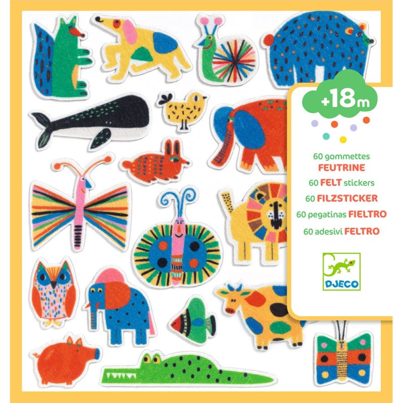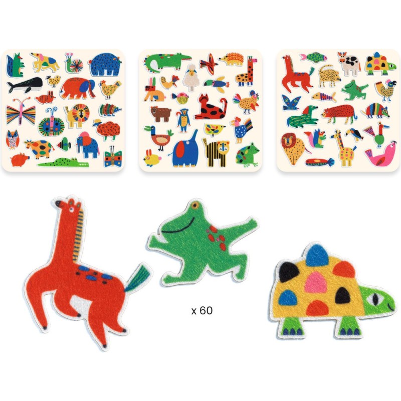 Gommettes et Stickers 60 gommettes en feutrine - Des animaux partout ! - Djeco