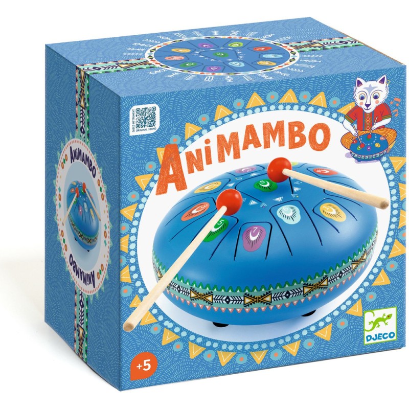 Grand tambour en acier de 20 cm joliment illustré sur le thème amérindien. Cet instrument de musique à percussion comporte 11 languettes correspondant à 11 notes de musique. Très intuitif et facile à jouer, l’enfant tape sur les languettes avec les baguettes ou les pics à doigts : par ses vibrations, l’instrument émet un son doux et relaxant.