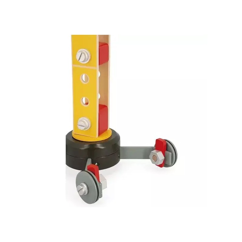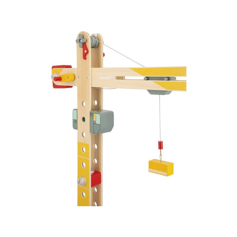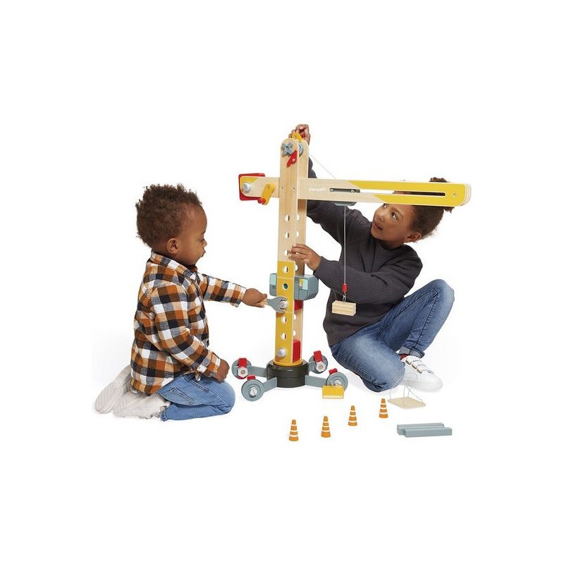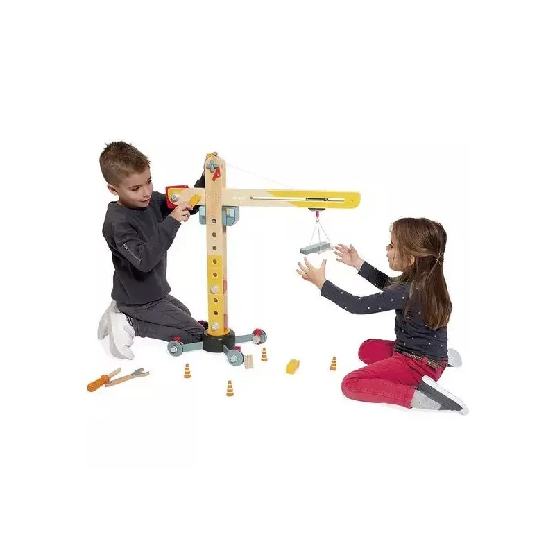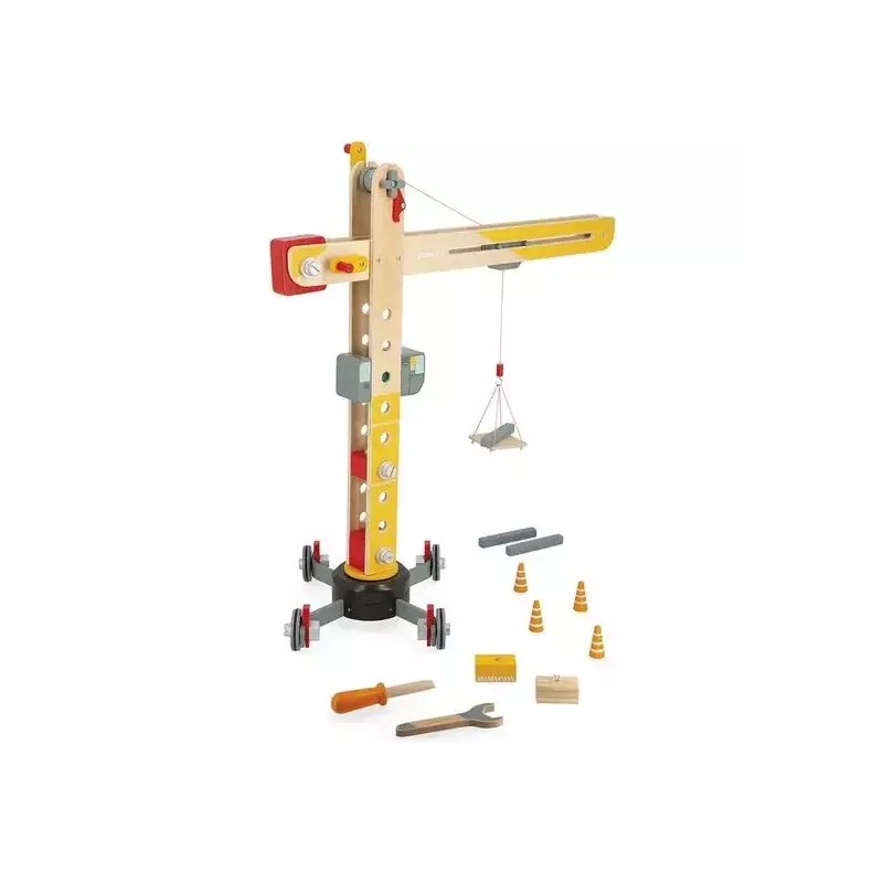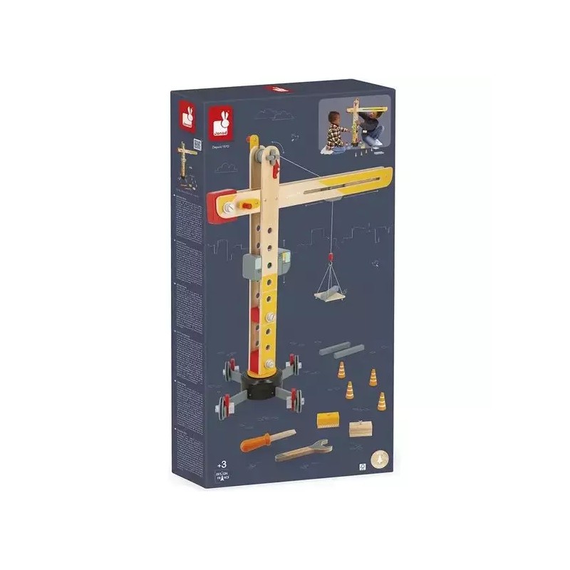 Avis aux amoureux des chantiers et des travaux en tout genre. Voici un jouet incontournable, une grue de construction en bois pour s'imaginer en chef de chantier expérimenté ! Ce grand jouet de 74 cm de haut sera la pièce centrale des histoires grandioses des enfants dès 3 ans. Quel plaisir de jouer avec cet engin de travaux publics robuste qui fera prendre de la hauteur à tous les apprentis constructeurs. D'abord, il faudra assembler ce beau jouet, un premier jeu de construction qui ravira les petits bâtisseurs. Cette grande grue mobile repose sur 4 roues qui permettent également de stabiliser l'ensemble. Un système de blocage empêche l'engin de bouger quand l'enfant le décide. L'élévateur se manipule très facilement grâce à 2 manivelles situées sur le dessus de la grue. Comme pour une vraie grue, elles permettent de faire monter et de diriger une nacelle qui transportera tout le lourd matériel nécessaire sur les chantiers ! Cette magnifique grue aux tons bois, oranges et rouges est équipée de 10 accessoires et de 2 outils. Elle est fabriquée à partir de bois Fsc (bois issus de forêt gérées durablement).