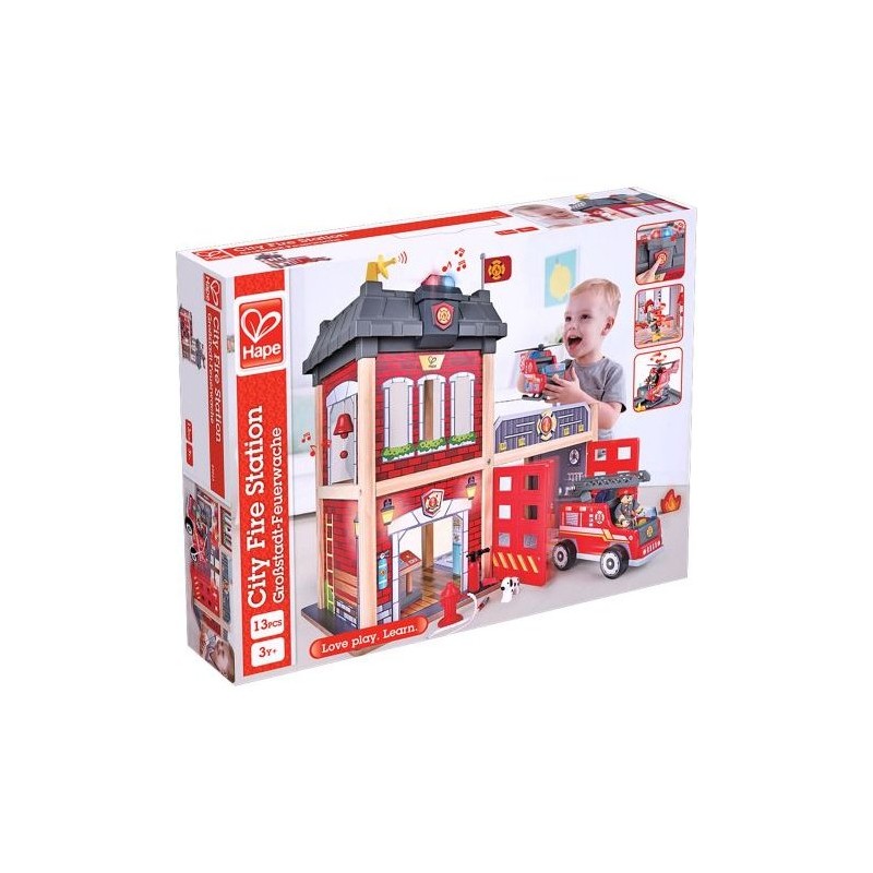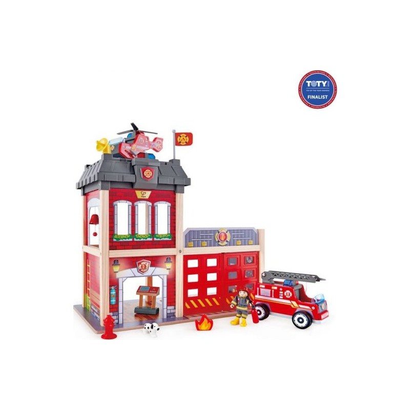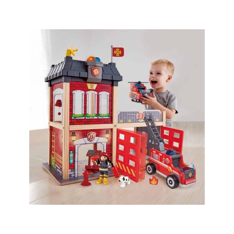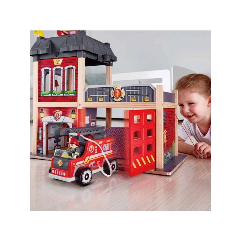 Partez aux secours avec ce fabuleux ensemble de caserne de pompiers Hape en bois rempli de nombreux accessoires de pompiers. Din, din, din ! On dirait que l'alarme de la caserne de pompiers sonne et clignote... Il faut éteindre un feu ! Votre enfant sera chargé de sauver les vies en danger avec l'aide des pompiers du parc. Il se sentira comme un vrais héros !