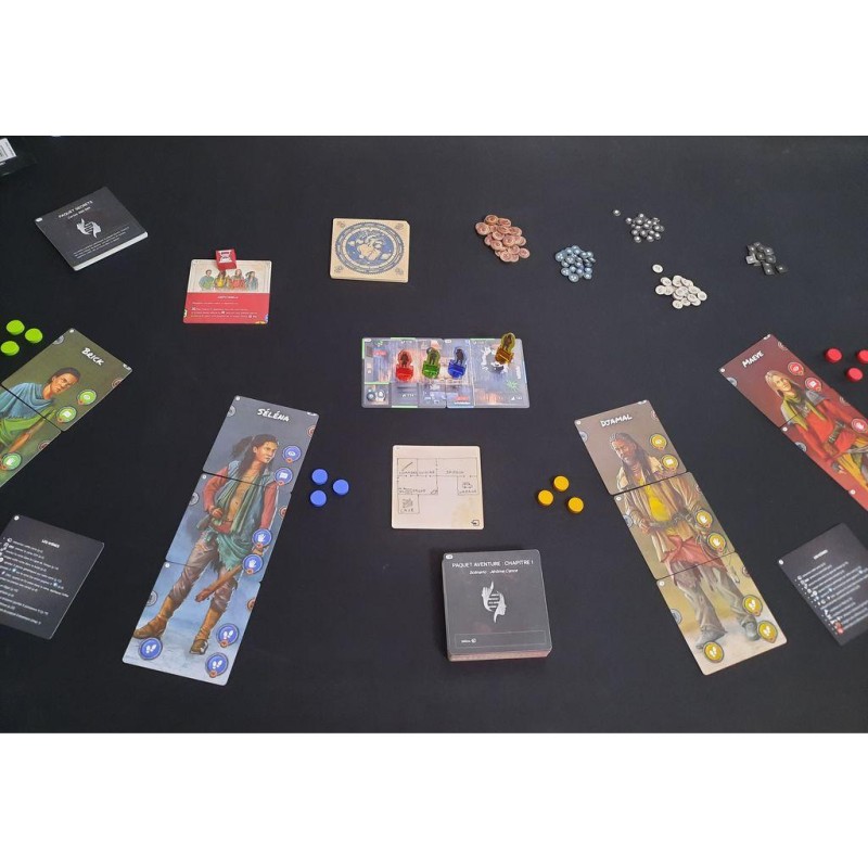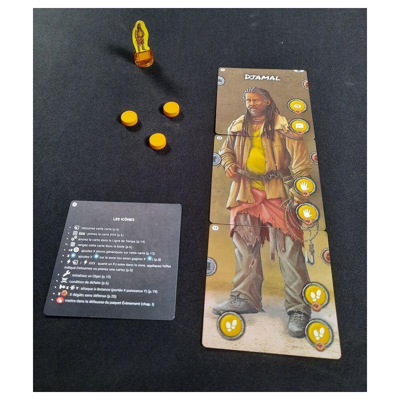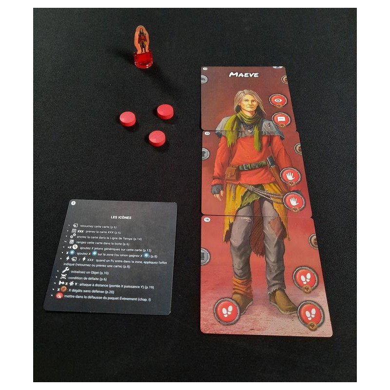 Jouer une famille permet de s'identifier facilement aux personnages, renforce la coopération et donne une sensation de jeu de rôle. Chaque scénario est un paquet de cartes proposant un environnement différent à explorer et des surprises propres à chaque chapitre. Les rebondissements arrivent via la ligne de temps, en charge d'activer tout ce qui se passe dans le jeu : vos actions, celles des autres personnages, les évènements... Un pion sablier parcourt cette ligne de temps pour activer les cartes ajoutées par vos actions et c'est le cœur du jeu : le scénario est écrit mais le jeu réagit à ce que vous faites pour déclencher une réaction en chaine d'évènements. L'idée est de se rapprocher d'une narration forte inspirée du cinéma ou des séries Tv pour favoriser l'immersion.