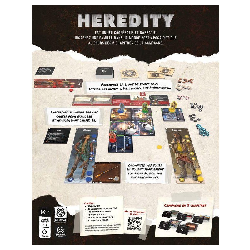 Heredity est un jeu coopératif et narratif. Incarnez une famille dans un monde post-apocalytique au cours des 5 chapitres de la campagne. Vos choix auront un impact immédiat sur vos personnages et sur la conclusion de leur aventure.