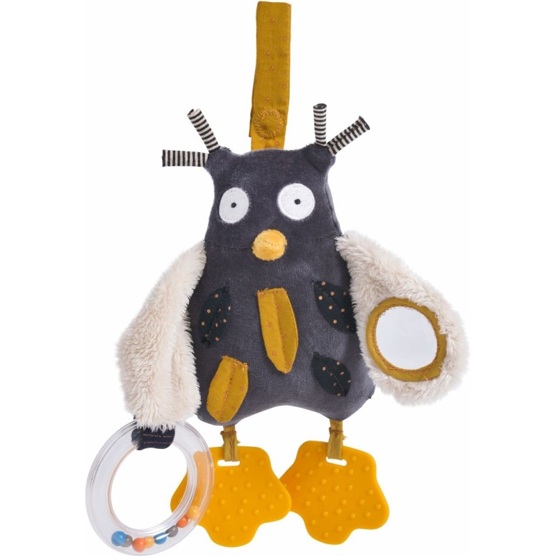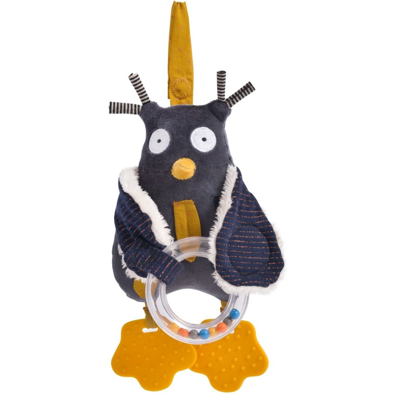 Un petit hibou aux talents incroyables : anneau avec billes, spatule dentaire, plastique qui fait du bruit, hochet, et miroir. Mais qui est ce tendre trio moustachu ? À la tombée de la nuit, les Moustaches jouent de la musique sur les toits, sous l’œil amusé de Monsieur Hibou, leur fidèle compagnon.