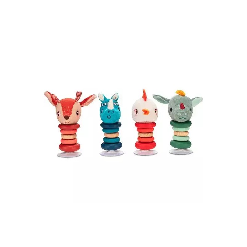 Stella le Faon adore danser et faire la fête. Toujours dynamique, elle ne peut pas rester en place ! Ce hochet à son effigie la représente bien ; il se balance joyeusement dans tous les sens à la moindre poussée. Grâce à la ventouse, il reste parfaitement debout et vous pouvez le fixer n'importe où.