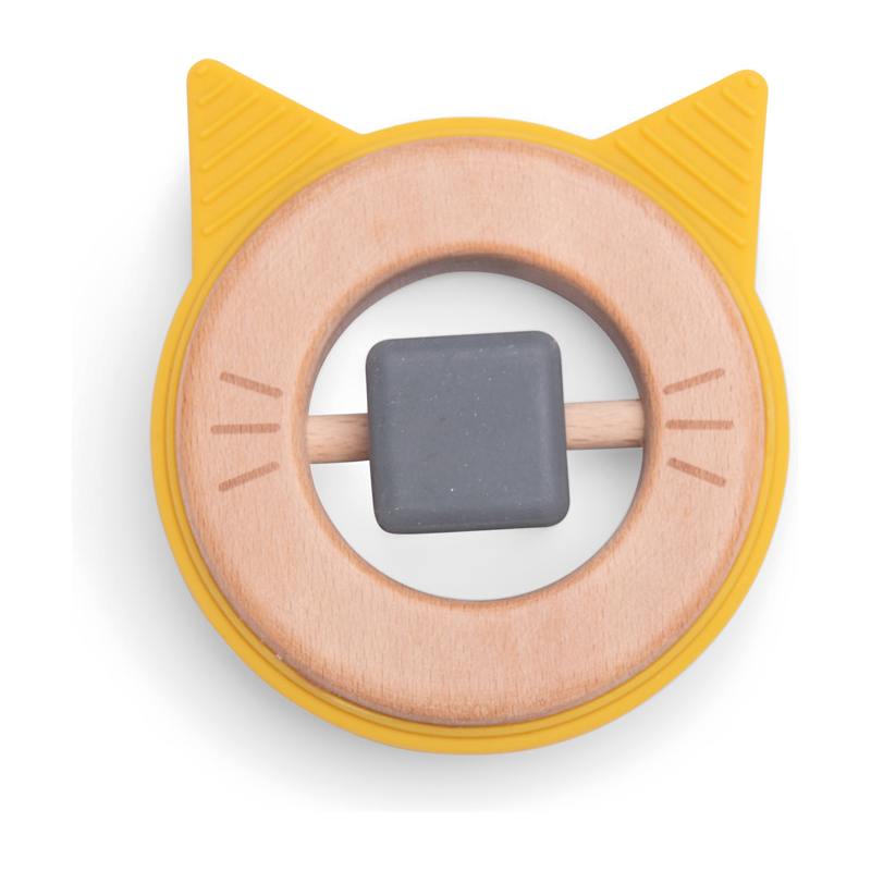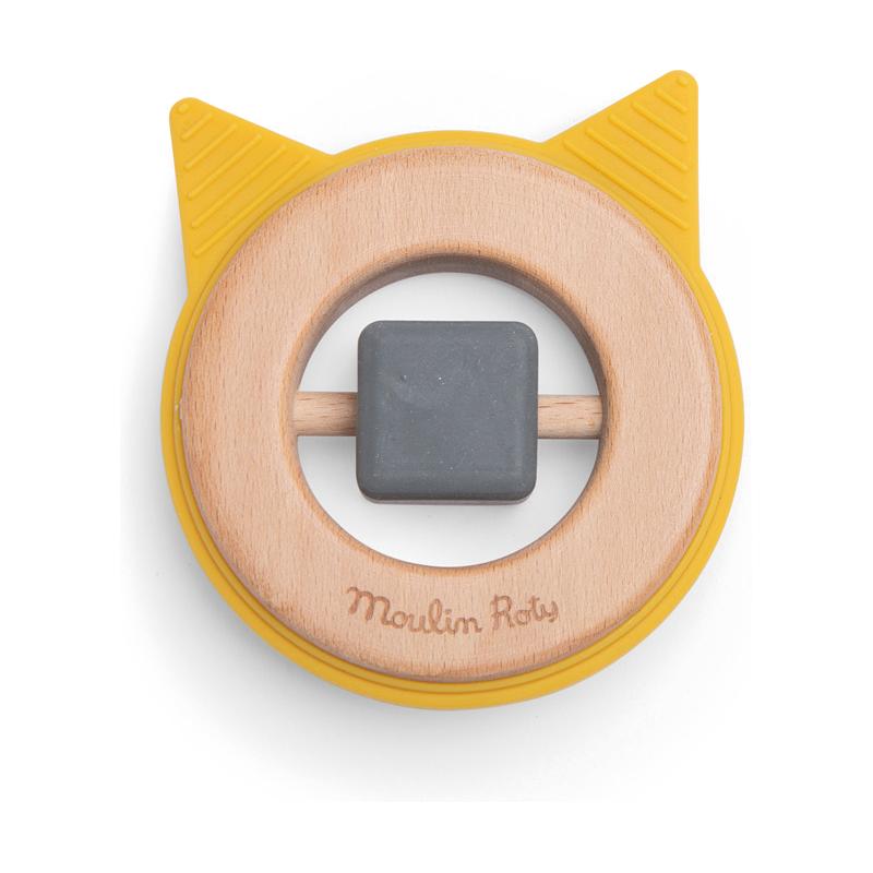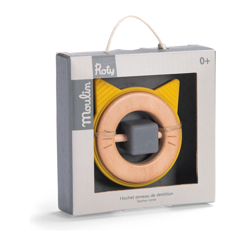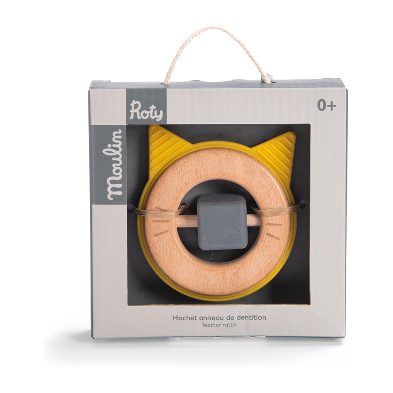 De quoi jouer ou mâchouiller pour bébé avec cet Hochet de dentition chat bi-matière en bois et silicone. Avec sa forme facile à saisir par les petits mains, il divertira bébé et massera en douceur ses gencives lors des poussées dentaires.